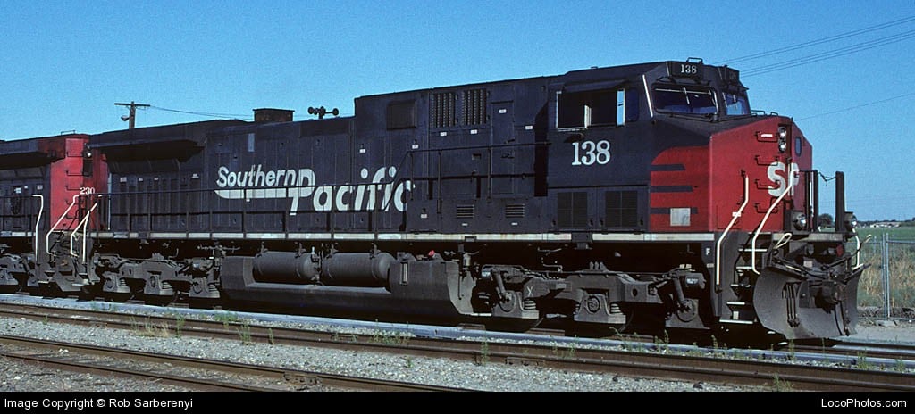 This loco was built in 4/1995 with GE construction number 48517. She was built as a freight engine. She was painted in standard for the time bloody nose colors and featured a full speed lettered SOUTHERN PACIFIC on the long hood. She also featured a North American saftey cab.