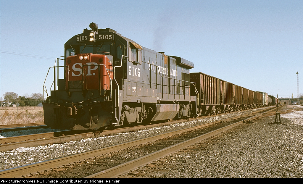 This loco was built in 6/1980 with GE construction number 42984. It was built as a freight engine. It was painted in standard for the time bloody nose colors and featured a full 5 light headlight arrangement on both the front and rear end. Note the periods after the initials on the nose. It is also noteworthy that this loco was photographed at both ends of the SP system within a few weeks in early 1987.