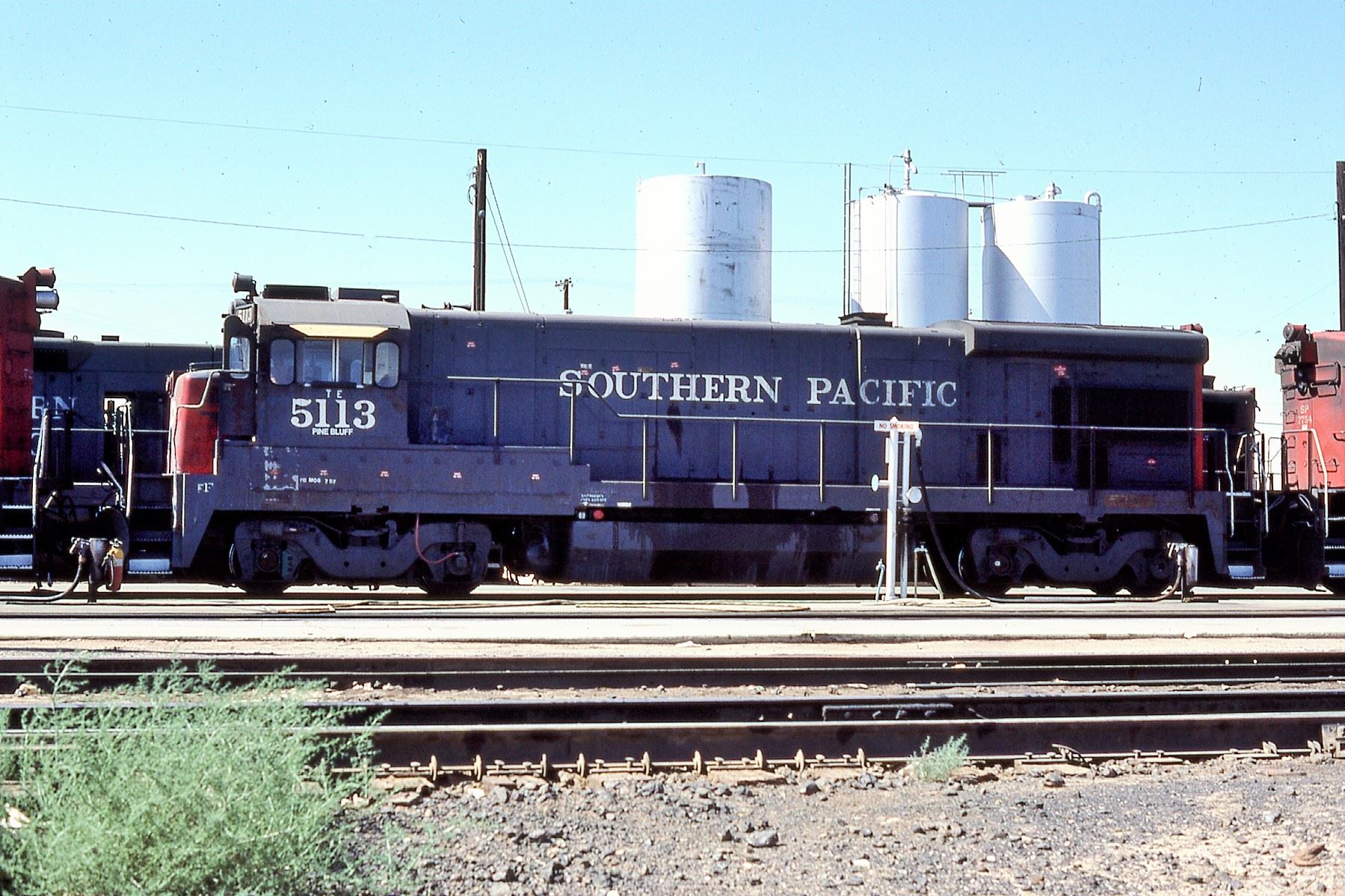 This loco was built in 6/1980 with GE construction number 42992. She was built as a freight engine. She was painted in standard for the time bloody nose colors and featured a full 5 light headlight arrangement on both the front and rear end.