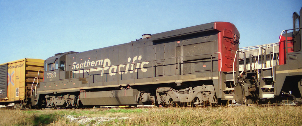 This loco was built in 1/1980 with GE serial number 42797. She was built as a freight engine. She was painted in standard for the time bloody nose colors and featured a full 5 light headlight arrangement on the front and possibly only a single twin sealed beam light on the rear. She was repainted into the SP Speed Lettering scheme and lost her Cotton Belt identity, but retained small "SSW" sublettering under the road number on the cab.