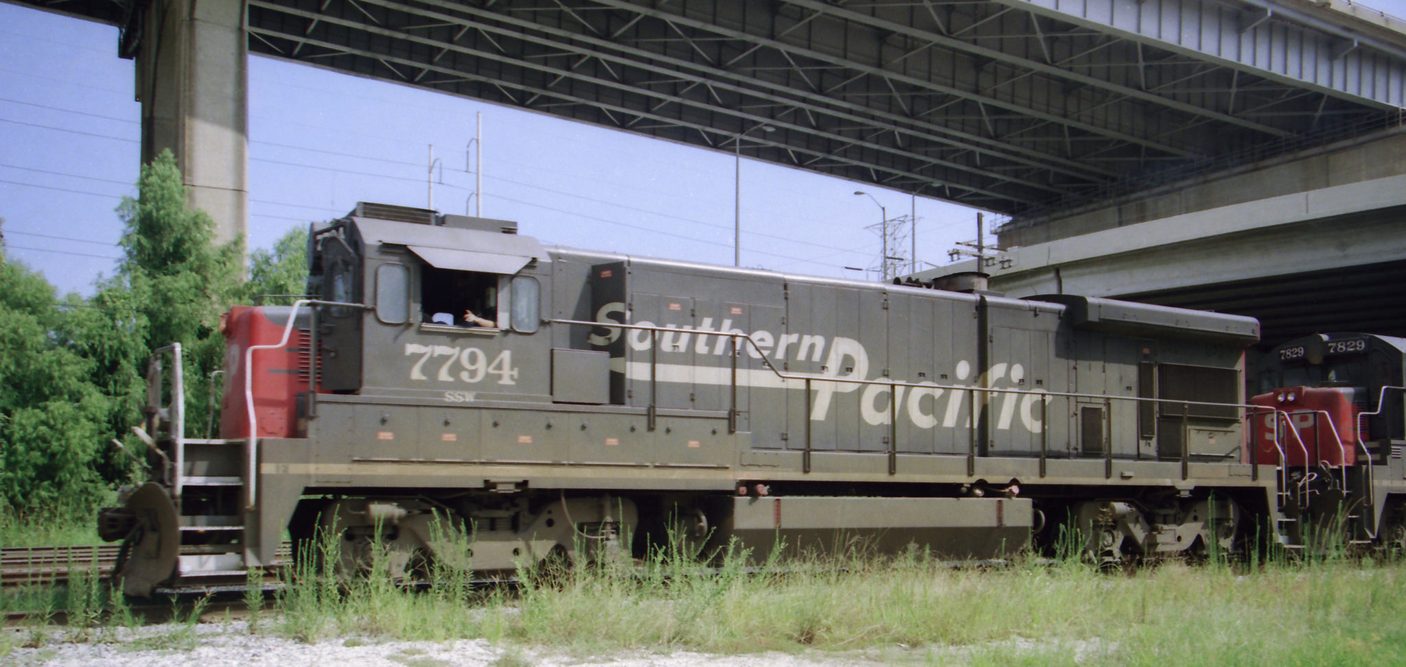 She was repainted into SP's speed lettering scheme following the SP's merger with the D&RGW railroad. With the new lettering, she became an SP unit, retaining her number.