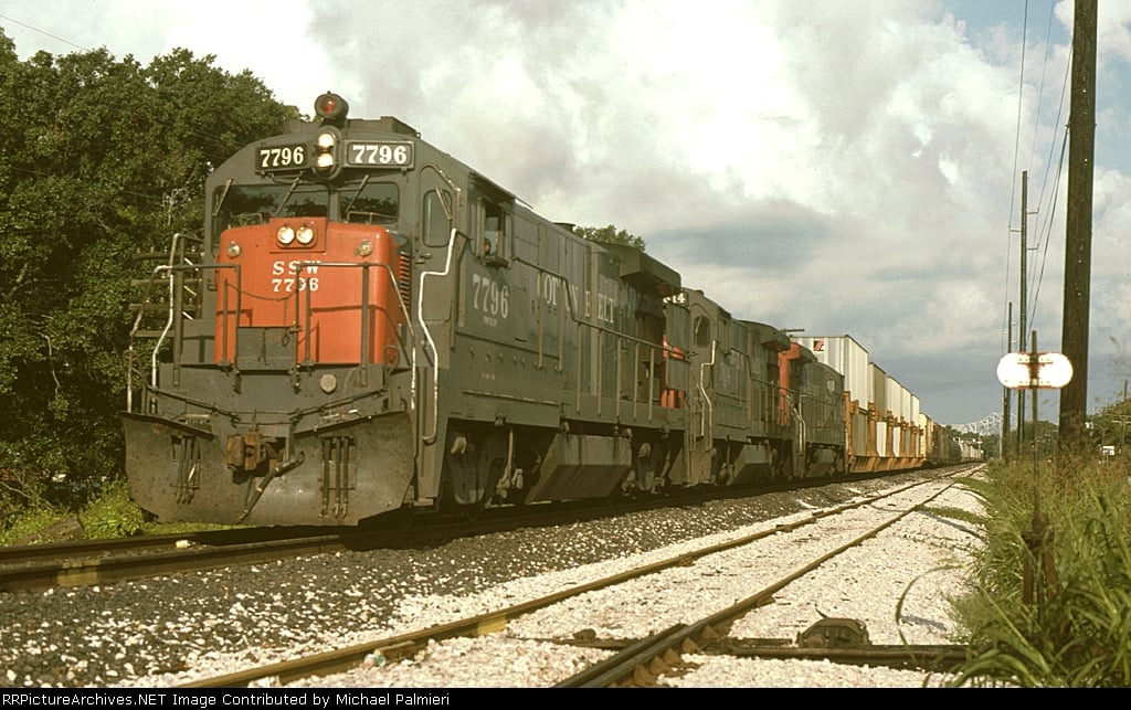This loco was built in 1/1980 with GE serial number 42810. She was built as a freight engine. She was painted in standard for the time bloody nose colors and featured a full 5 light headlight arrangement on both her front and rear end.