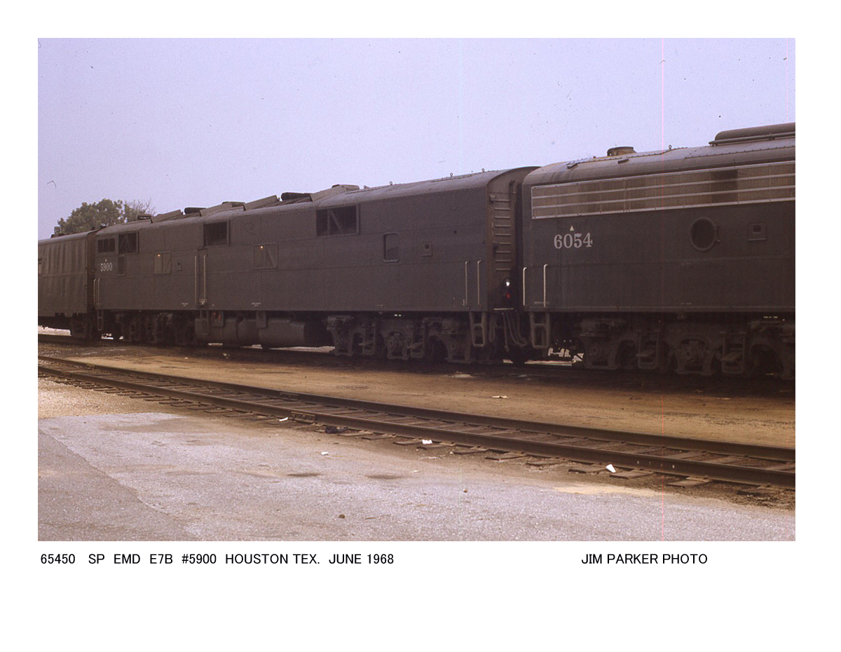 This loco was built in 4/1947 with EMD construction number 4218. She was built as a dual engined E7 B-unit. She was painted in the SP's Golden State red and silver paint, but was repainted into standard Daylight orange and red fairly quickly. She was delivered as part of an ABB set which included a matching E7 A-unit numbered SP 6000A & a mate E7 B-unit numbered 6000C, but they were never drawbar equipped.