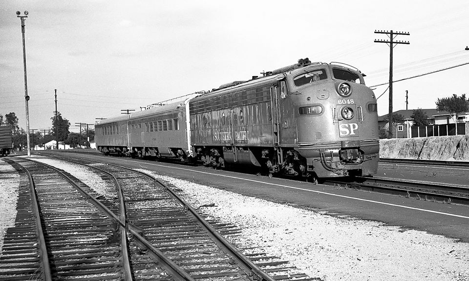 This loco was built in 12/1954 with EMD construction number 20097. She was built as a dual engined E9 A-unit. She was painted in SP's standard for the time Daylight orange and red.