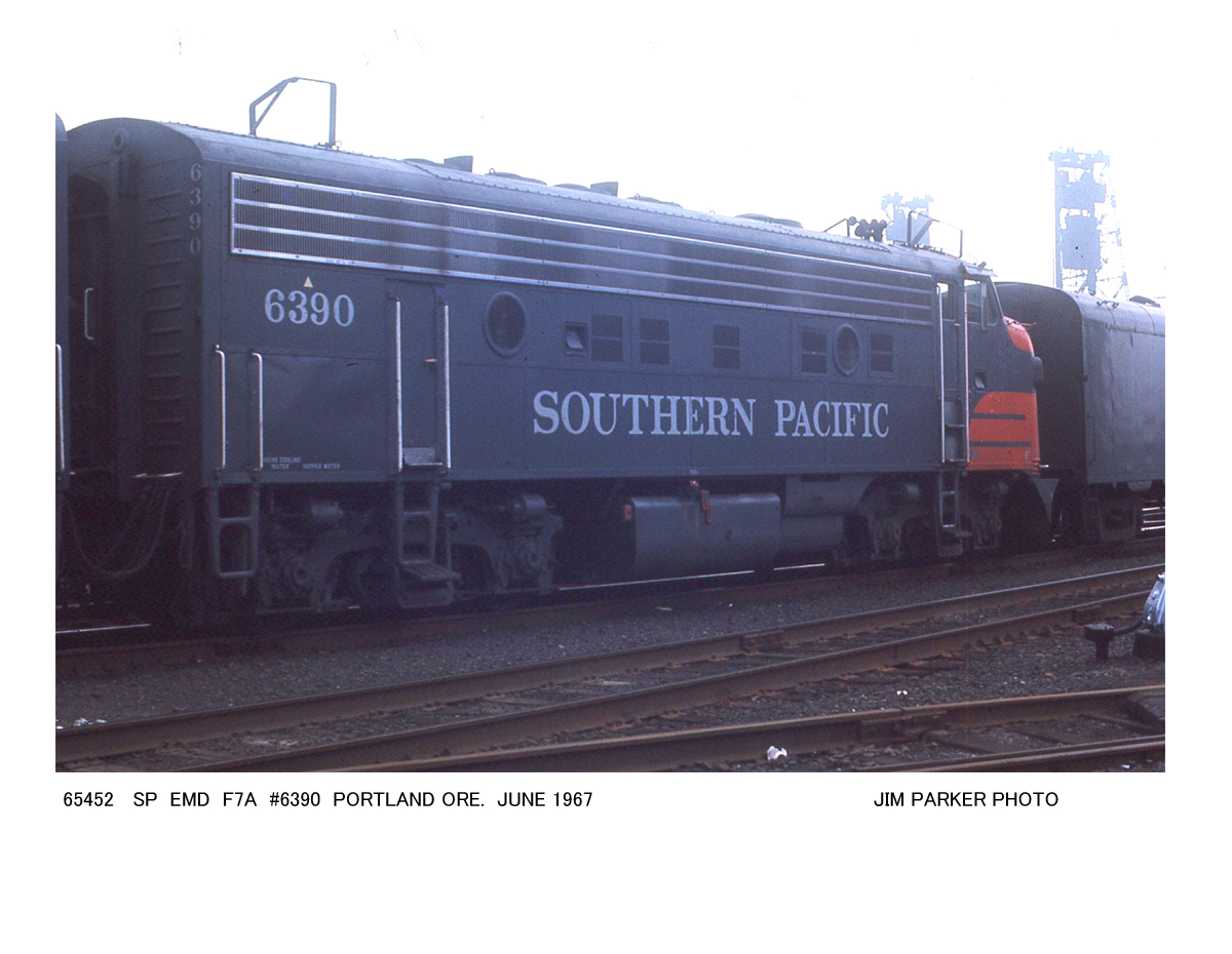 This loco was built in 07/1952 with EMD construction number 16571. It was built as a 1500 hp F7 A-unit. It was painted in the SP's standard for the time black widow colors.