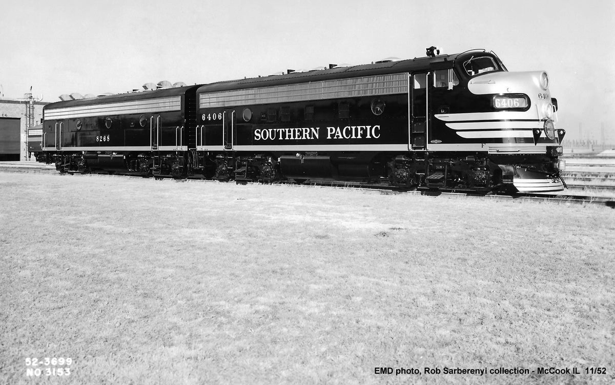 This loco was built in 11/1952 with EMD construction number 17172. It was built as a 1500 hp F7 A-unit. It was painted in the SP's standard for the time black widow colors.