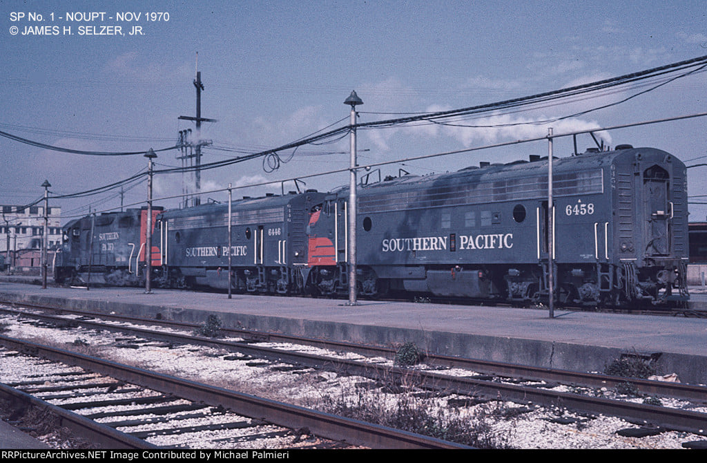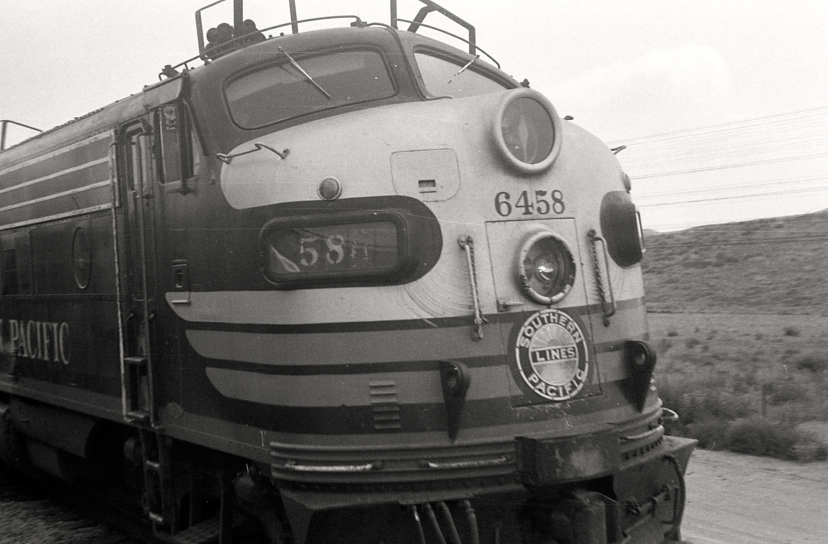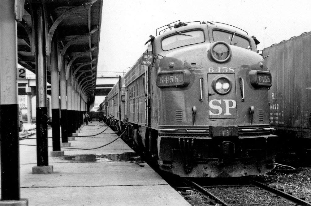 This loco was built in 03/1953 with EMD serial number 18142. She was built as a 1500 hp FP7 A-unit. She was painted in the SP's standard for the time black widow colors.
