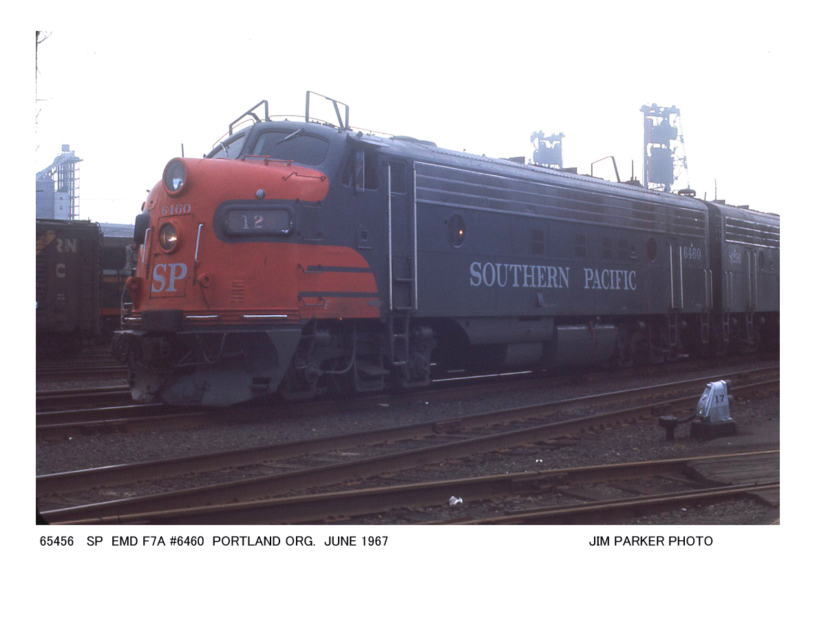 This loco was built in 03/1953 with EMD construction number 18144. It was built as a 1500 hp FP7 A-unit. It was painted in the SP's standard for the time black widow colors.