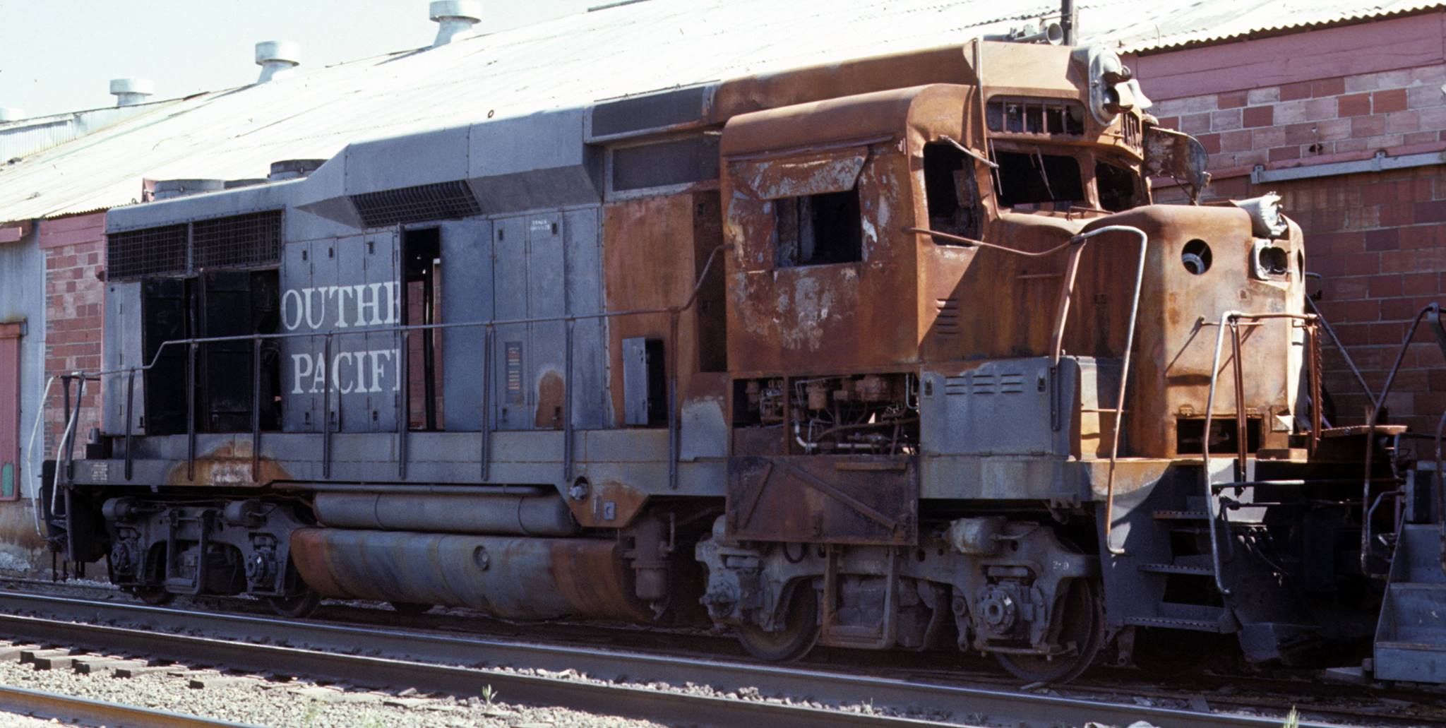 She is reported to have been involved in a serious wreck around 1972 and subsequently sold to GE. A photo below is from that year in Houston, which leads us to believe that the photo, despite a lack of number, is of this unit before being sent to GE.