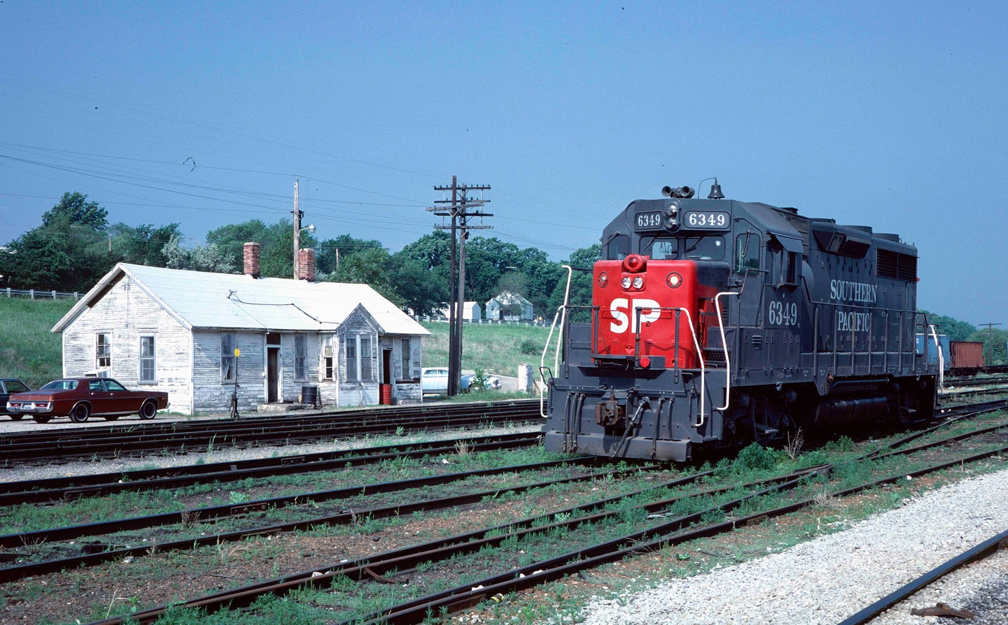 This unit was one of three GP35's (all rebuilt units) repainted into the "Speed Lettering" paint scheme at a point after the SP was bought by Rio Grande Industries in October 1988.