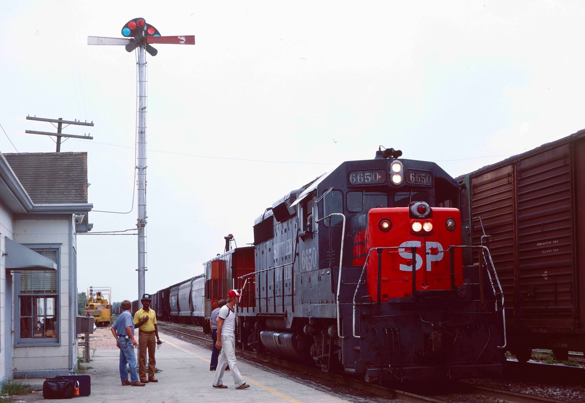 This loco was built in 6/1965 with EMD construction number 30160. She was built as a freight engine. She was painted in standard for the time bloody nose colors and featured a full 5 light headlight arrangement on the front end. The rear featured a dual sealed beam light only.