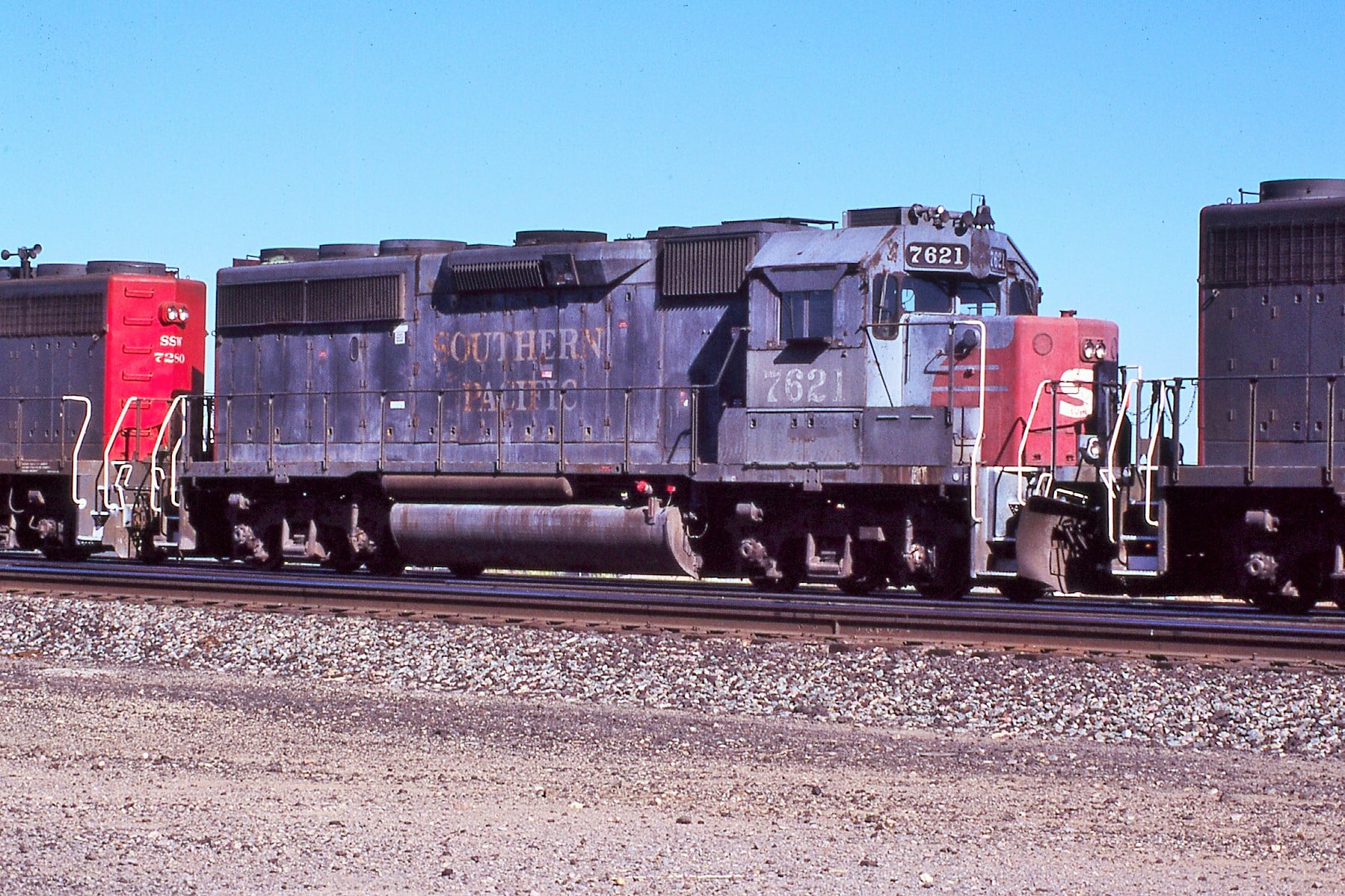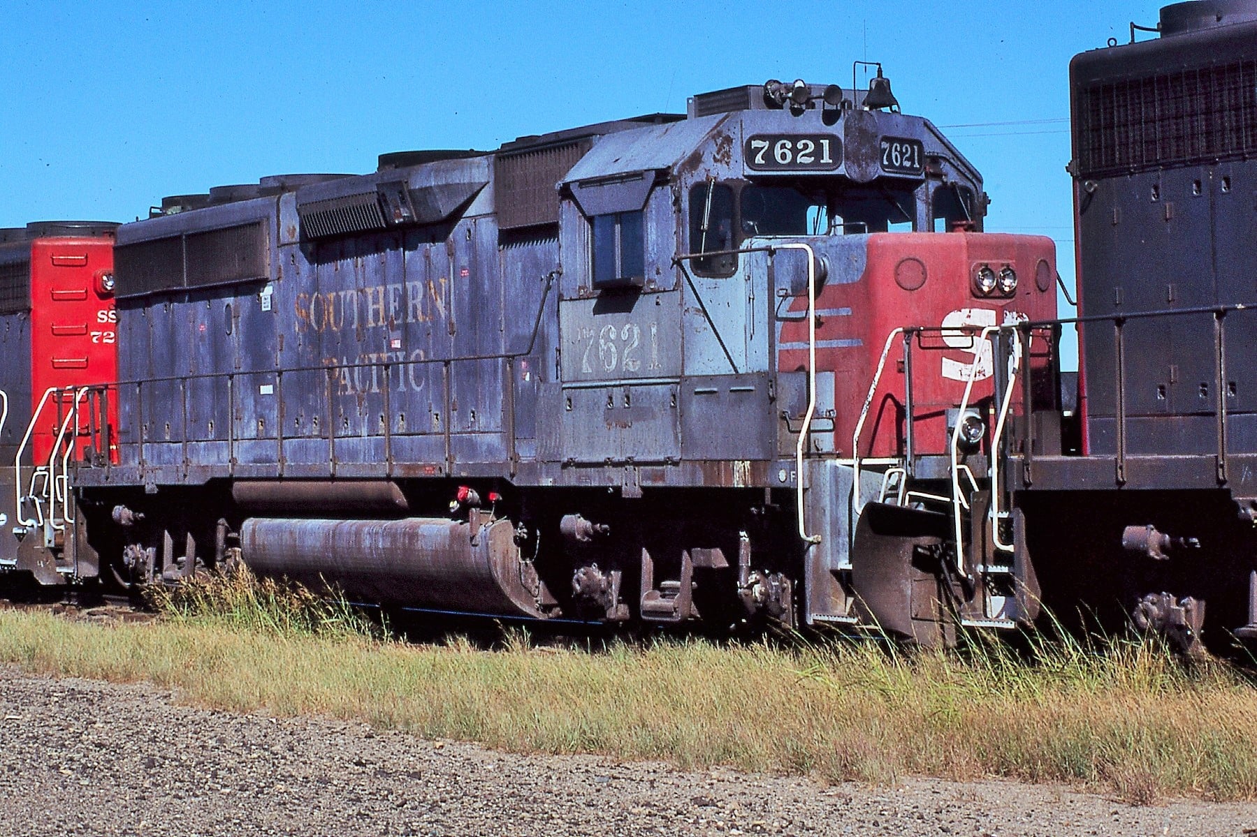 This loco was built in x/1978 with EMD serial number 776071-14. She was built as a freight engine. She was painted in standard for the time bloody nose colors and featured large front plow, anticlimber, cab-roof air conditioner and a full 5 light headlight arrangement on both the front and rear end.