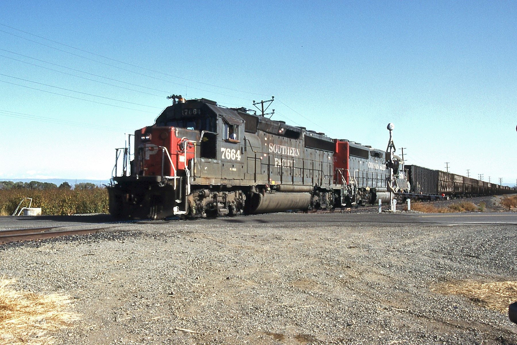 This loco was built in 3/1980 with EMD construction number 786266-7. She was built as a freight engine. She was painted in standard for the time bloody nose colors and featured large front plow, anticlimber, cab-roof air conditioner and a full 5 light headlight arrangement on both the front and rear end.