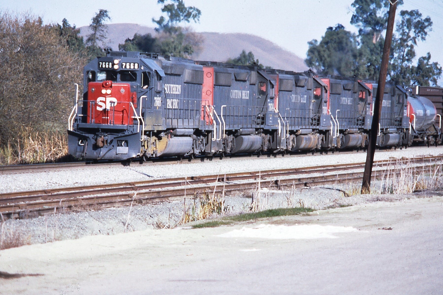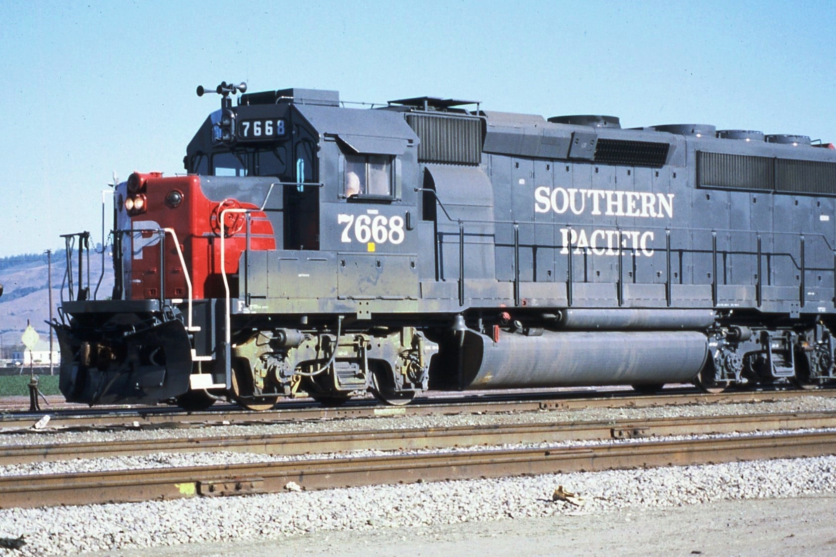 This loco was built in 3/1980 with EMD construction number 786266-11 She was built as a freight engine. She was painted in standard for the time bloody nose colors and featured large front plow, anticlimber, cab-roof air conditioner and a full 5 light headlight arrangement on both the front and rear end.