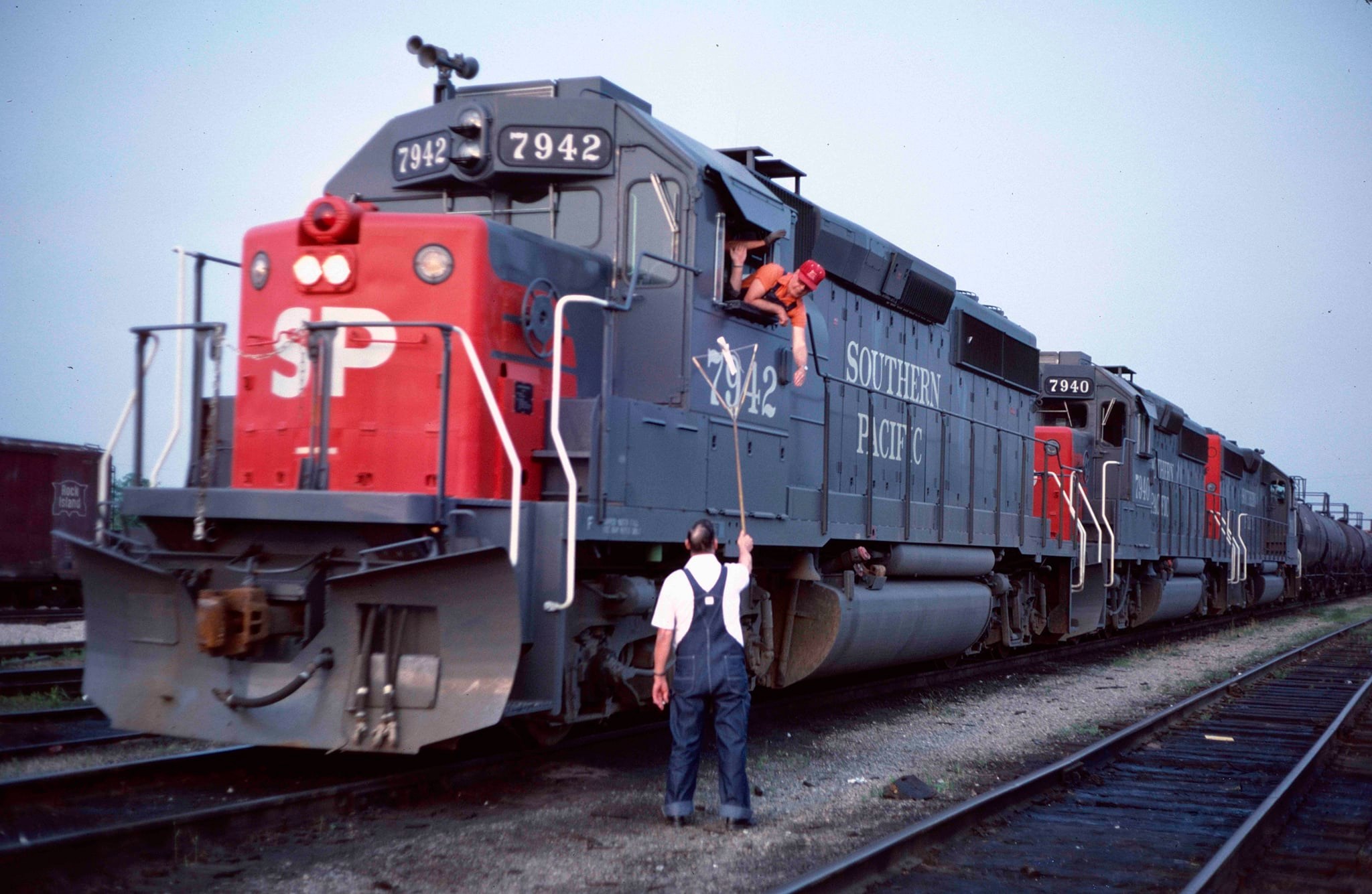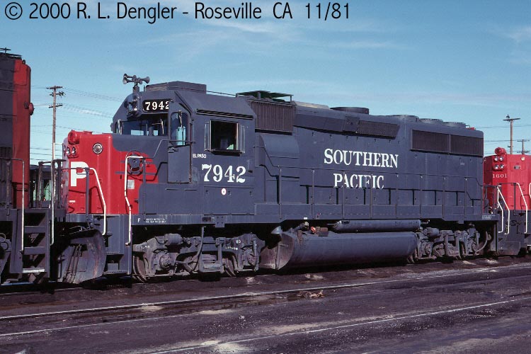 This loco was built in x/1980 with EMD construction number 796354-3. She was built as a freight engine. She was painted in standard for the time bloody nose colors and featured large front plow, anticlimber, cab-roof air conditioner and a full 5 light headlight arrangement on both the front and rear end. She was built to be a mother unit to SP's TEBU road slugs.