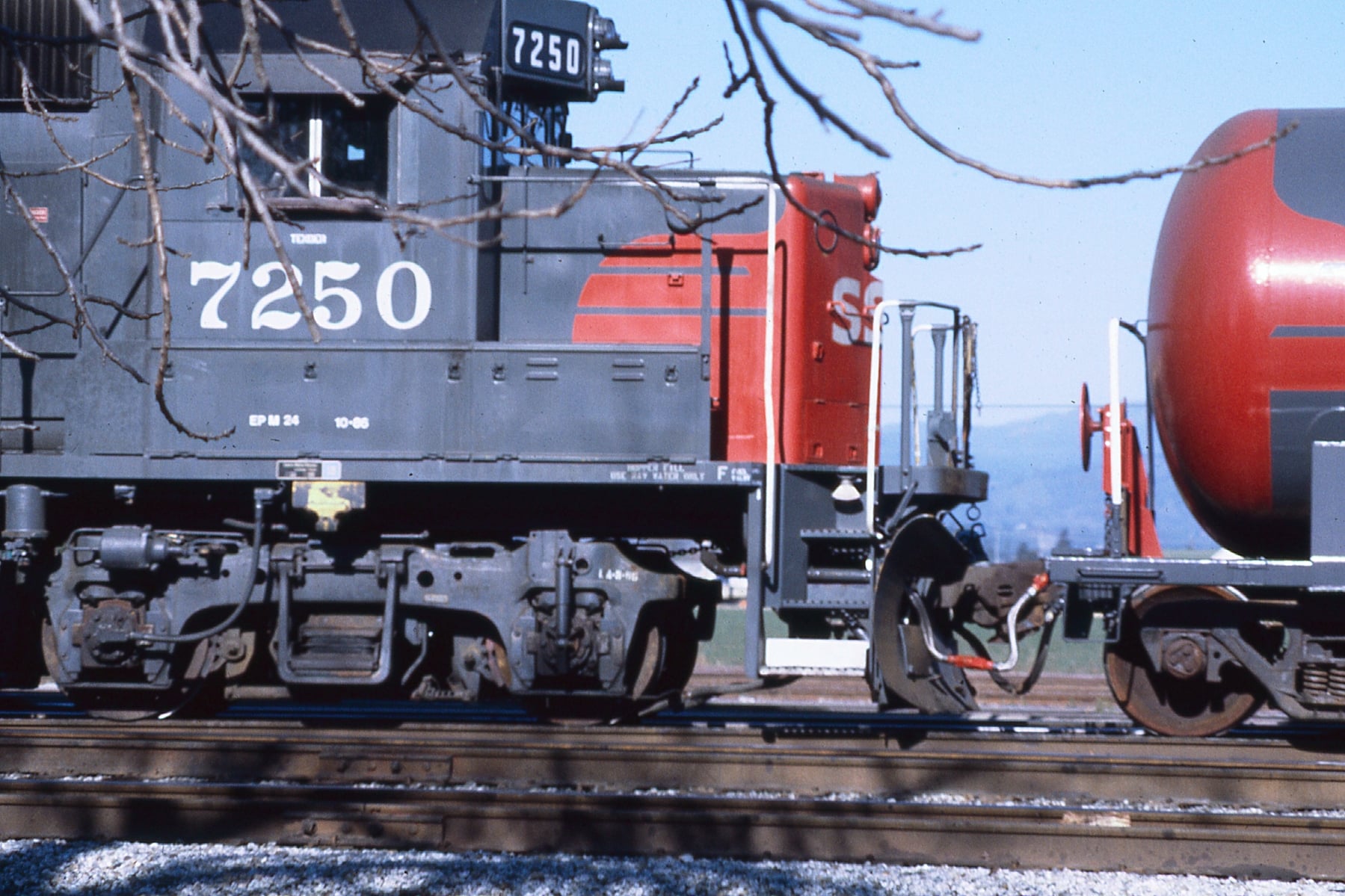 She was one of several SP/SSW GP40-2's equipped with piping for use with the fuel tender SP 700.