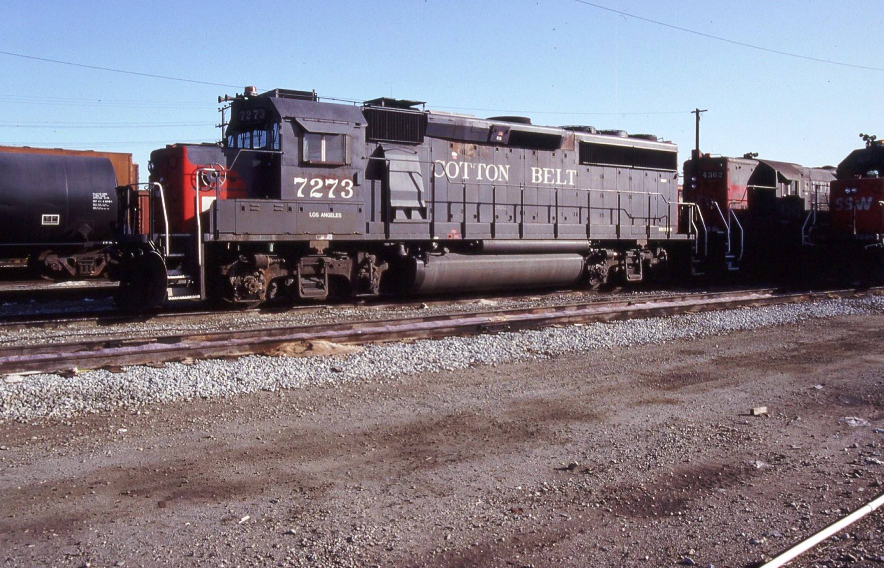 This loco was built in 10/1984 with EMD construction number 847046-26. She was built as a freight engine. She was painted in standard for the time bloody nose colors and featured large front plow, anticlimber, cab-roof air conditioner and a full 5 light headlight arrangement on both the front and rear end featuring Oscitrol oscilating headlights vs. the previous SP standard Gyralight.