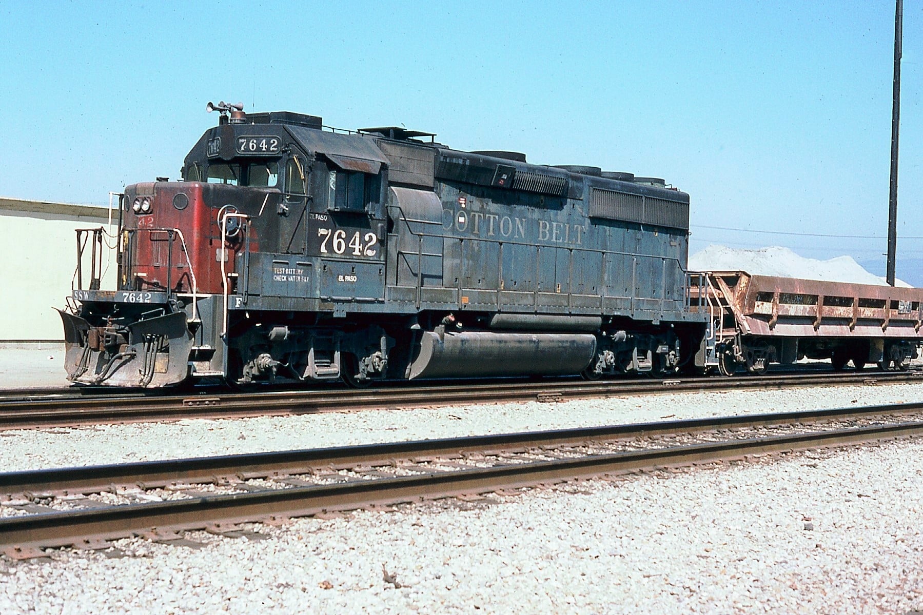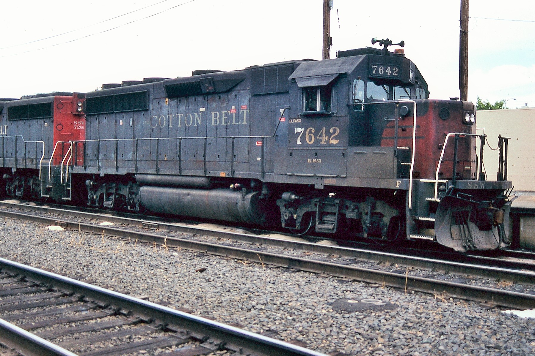 This loco was built in 1/1979 with EMD serial number 786179-15. She was built as a freight engine. She was painted in standard for the time bloody nose colors and featured large front plow, anticlimber, cab-roof air conditioner and a full 5 light headlight arrangement on both the front and rear end.