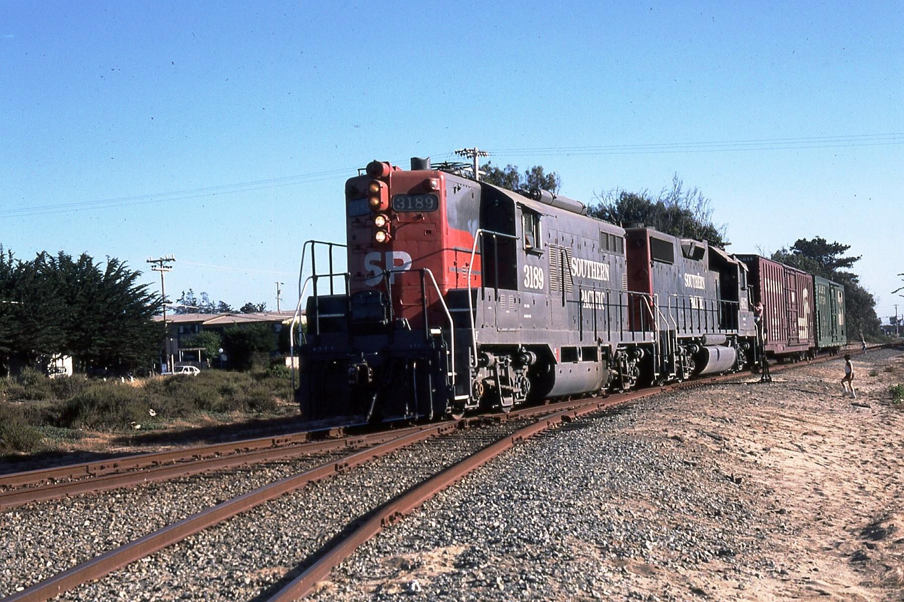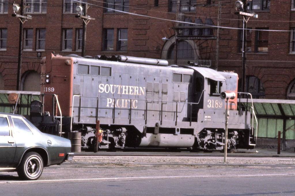 This loco was built in 4/1955 with EMD builder's number 19978. She was built as a passenger engine with a boiler in the nose. She was setup with dual control stands for operation in either direction, thus it had wings on the front and rear. She was painted in standard for the time black widow colors and featured Pyle oscilating dish signal lights on both ends and rooftop air resevoirs for increased fuel and water capacity between the trucks.