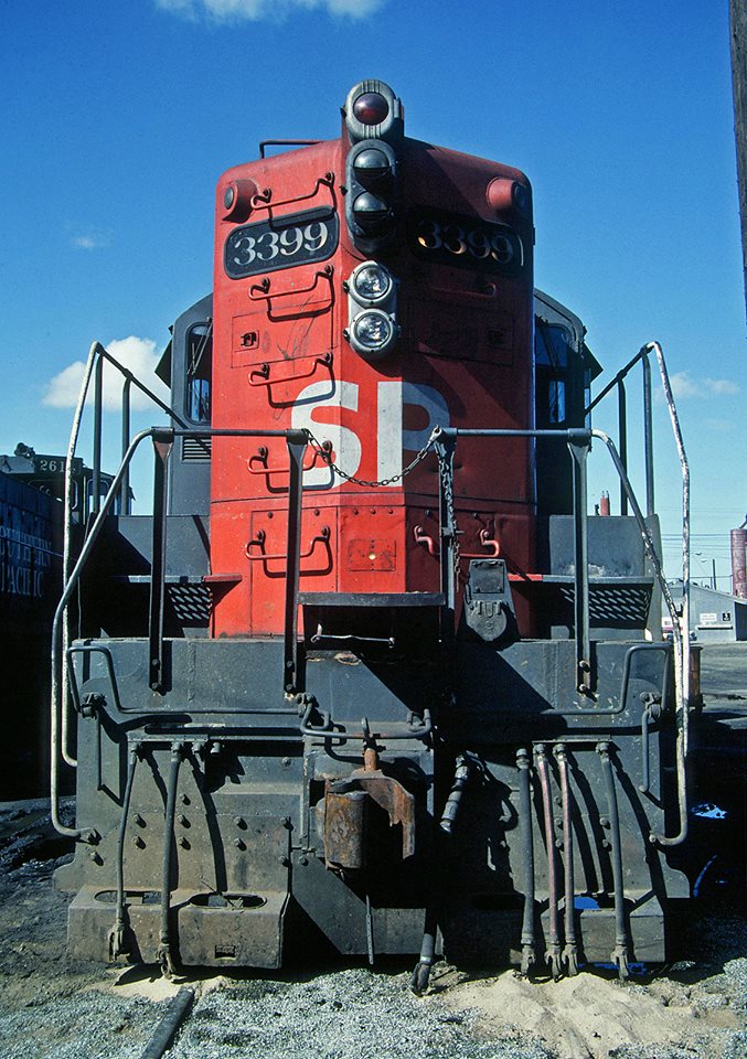 This loco was built in 2/1956 with EMD construction number 21332. It was built as a freight engine. It was painted in standard for the time black widow colors and featured a full 5 light headlight arrangement on each end.