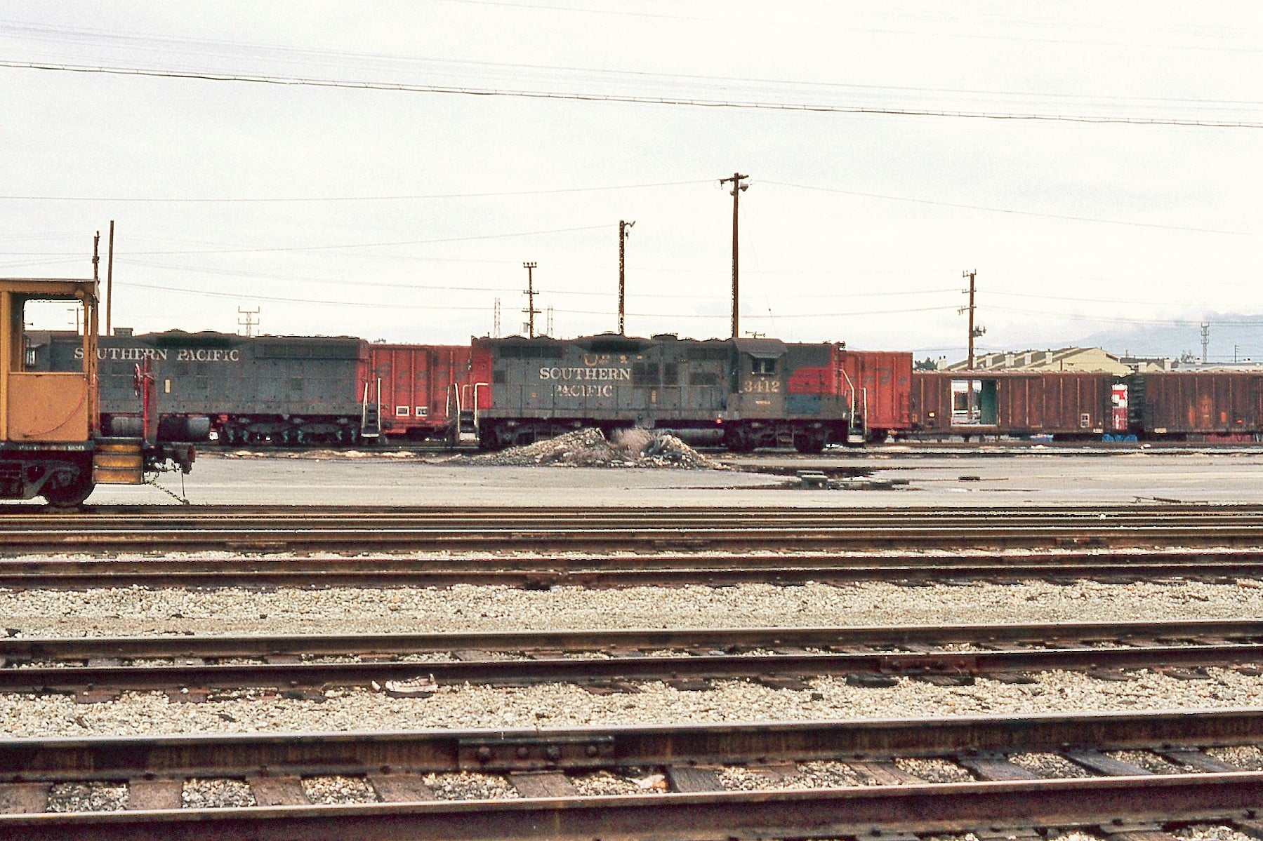 This loco was built in 3/1956 with EMD construction number 21355. It was built as a freight engine. It was painted in standard for the time black widow colors and featured a full 5 light headlight arrangement on each end.