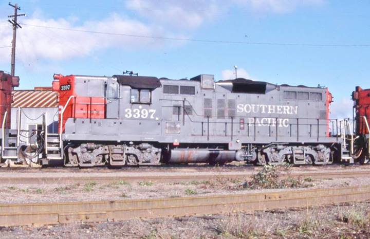 This loco was built in 4/1956 with EMD serial number 21359. She was built as a freight engine. She was painted in standard for the time black widow colors and featured a full 5 light headlight arrangement on each end.