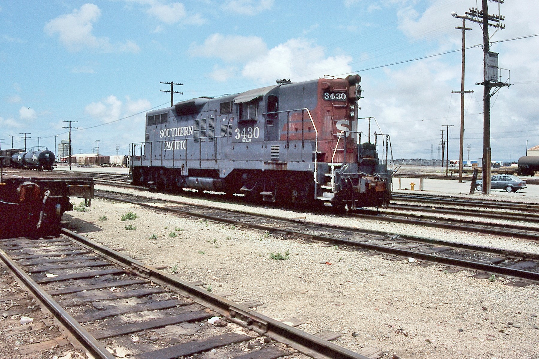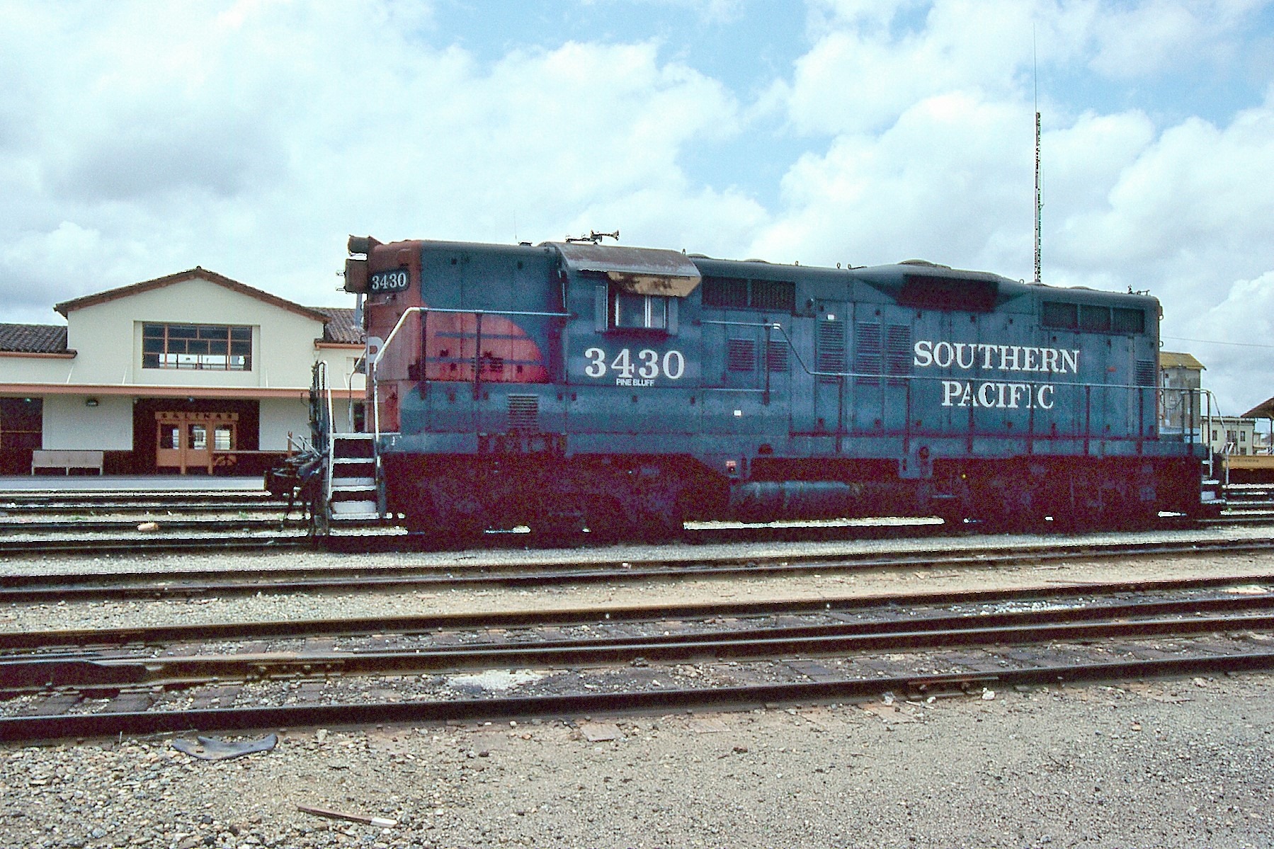 This loco was built in 4/1956 with EMD construction number 21368. She was built as a freight engine. She was painted in standard for the time black widow colors and featured a full 5 light headlight arrangement on each end.