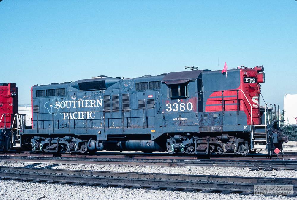 This loco was built in 4/1956 with EMD construction number 21380. She was built as a freight engine. She was painted in standard for the time black widow colors and featured a full 5 light headlight arrangement on each end.