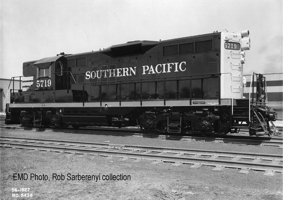 This loco was built in 5/1956 with EMD construction number 21412. She was built as a freight engine. She was painted in standard for the time black widow colors and featured a full 5 light headlight arrangement on each end.
