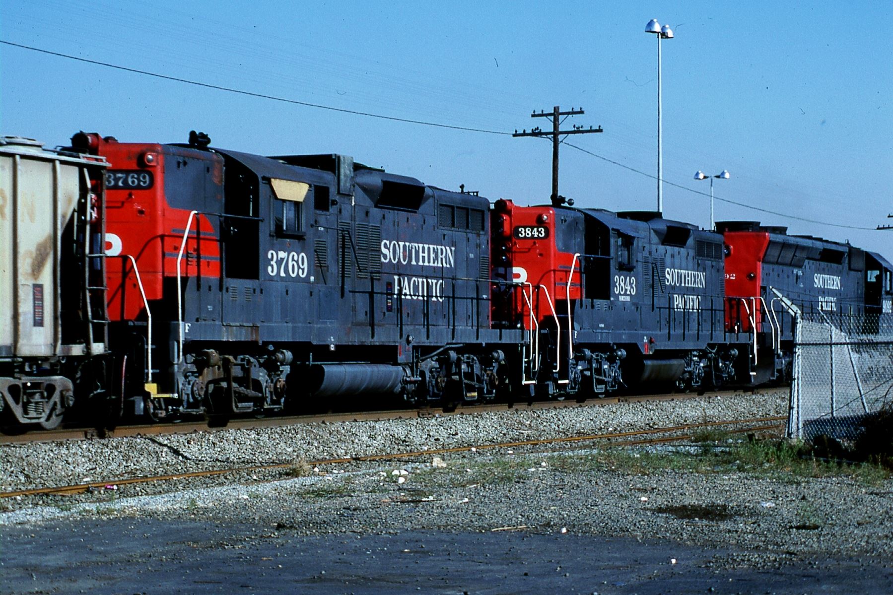 This loco was built in 1/1957 with EMD construction number 22915. She was built as a freight engine. She was painted in standard for the time black widow colors and featured a full 5 light headlight arrangement on each end.