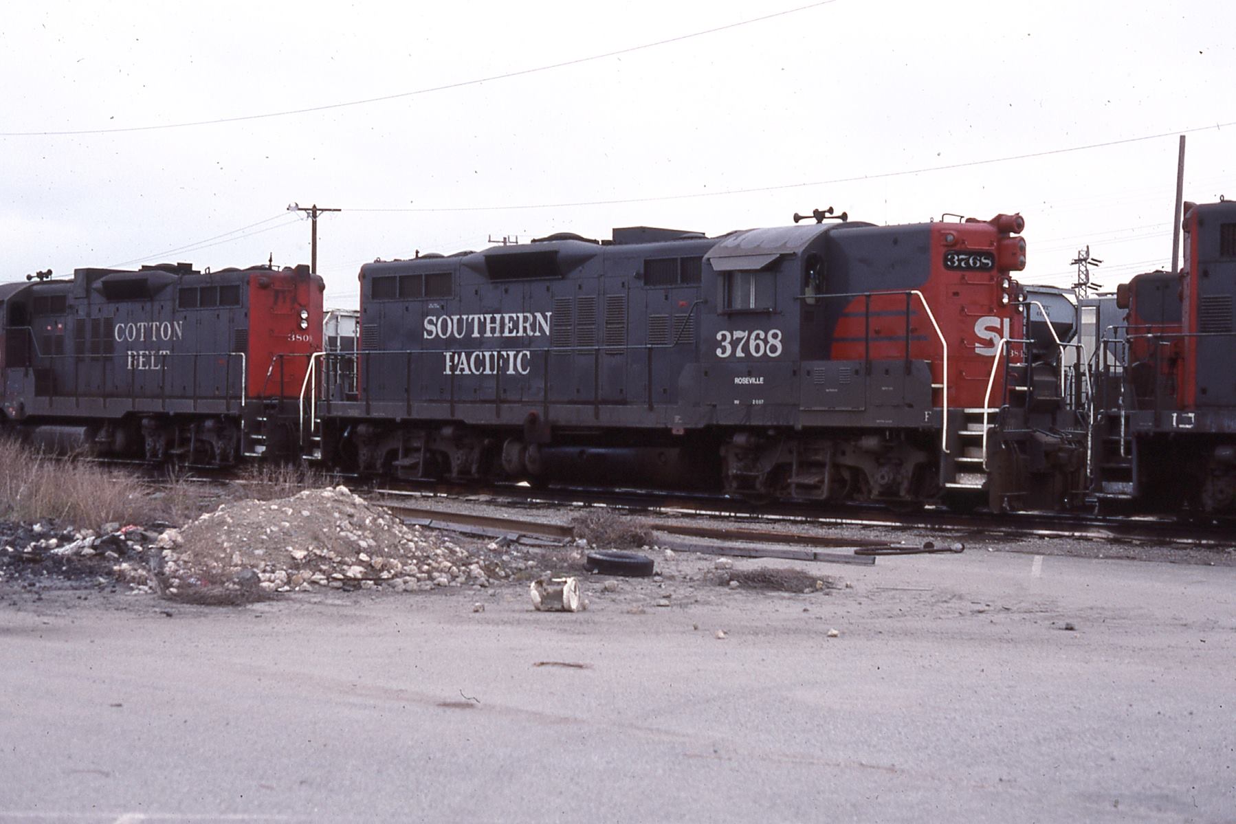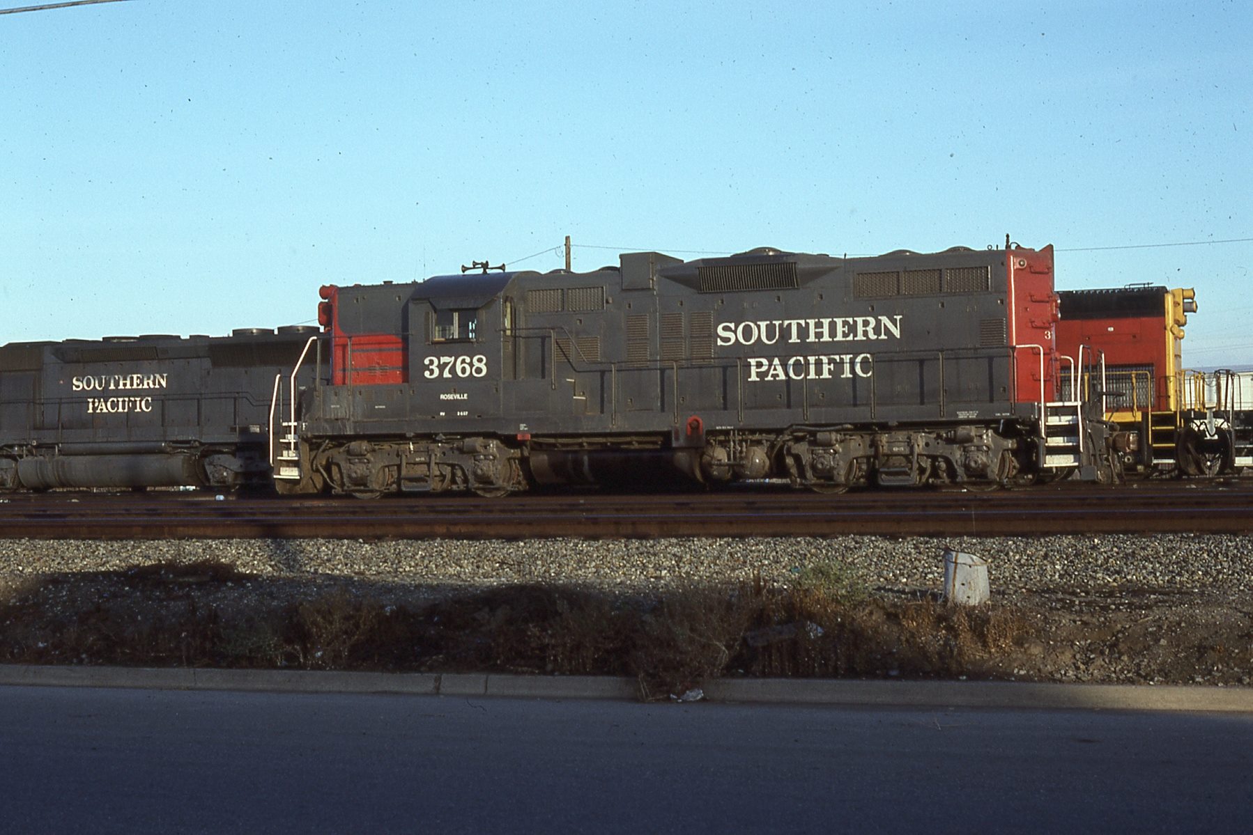 This loco was built in 1/1957 with EMD construction number 22916. She was built as a freight engine. She was painted in standard for the time black widow colors and featured a full 5 light headlight arrangement on each end.