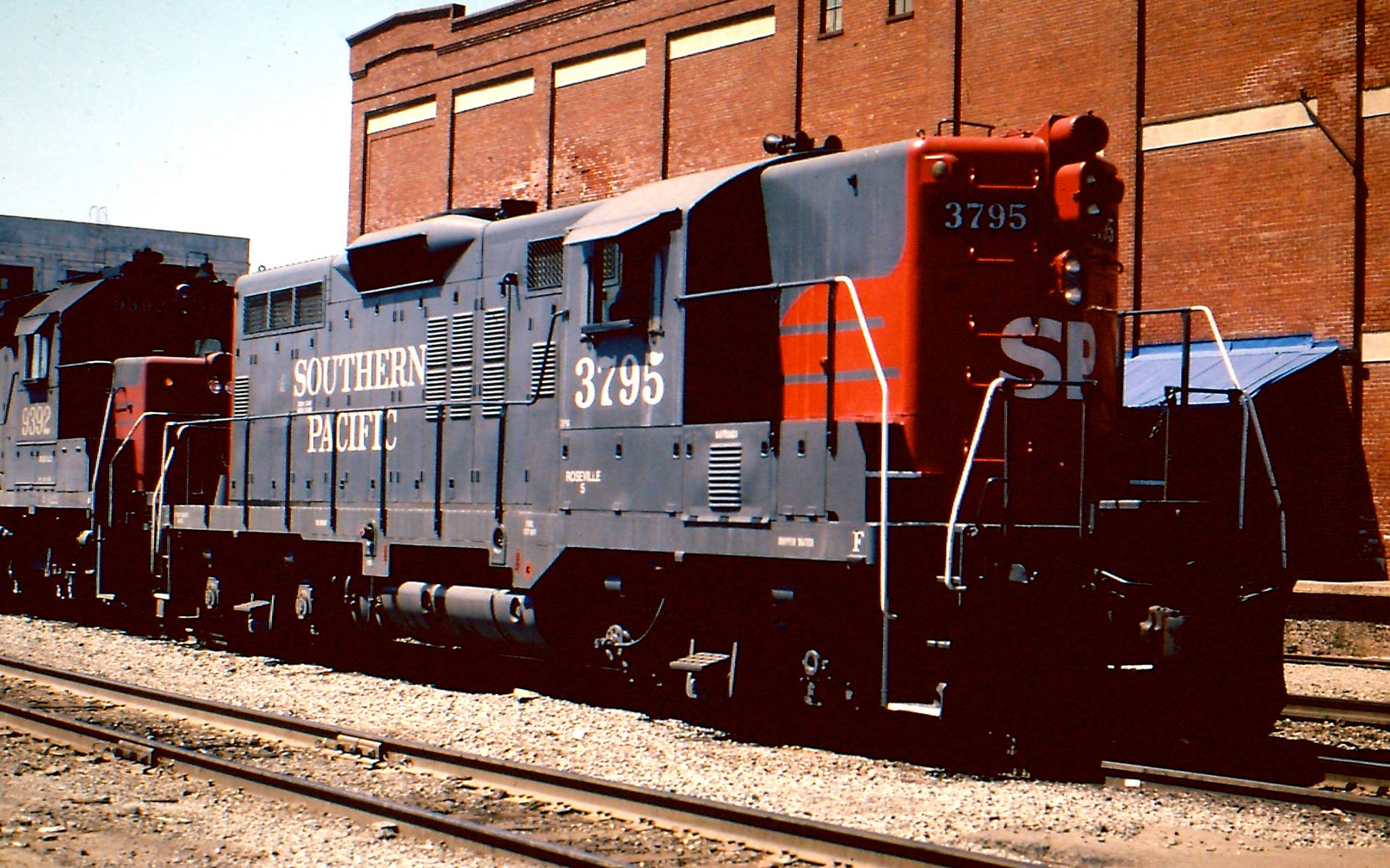 This loco was built in 3/1957 with EMD construction number 22950. It was built as a freight engine. It was painted in standard for the time black widow colors and featured a full 5 light headlight arrangement on each end.