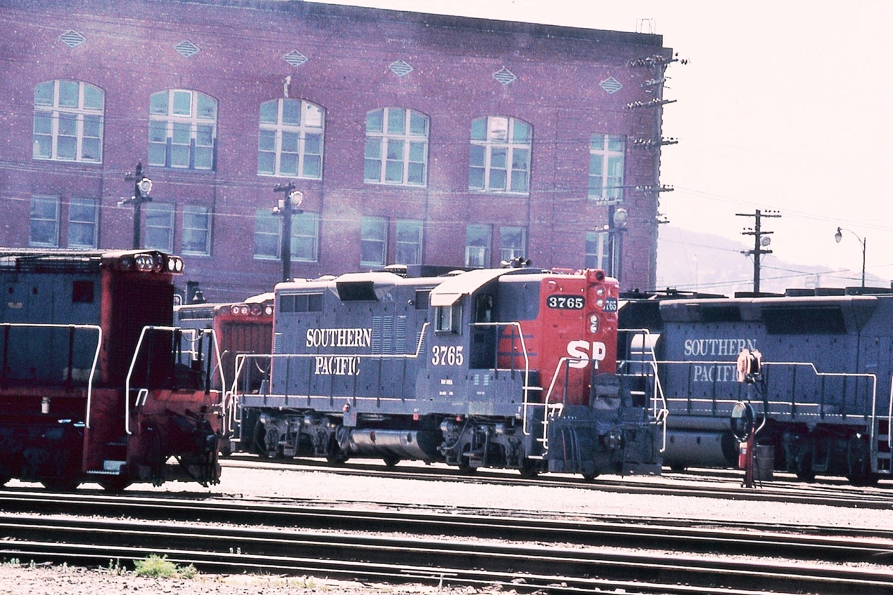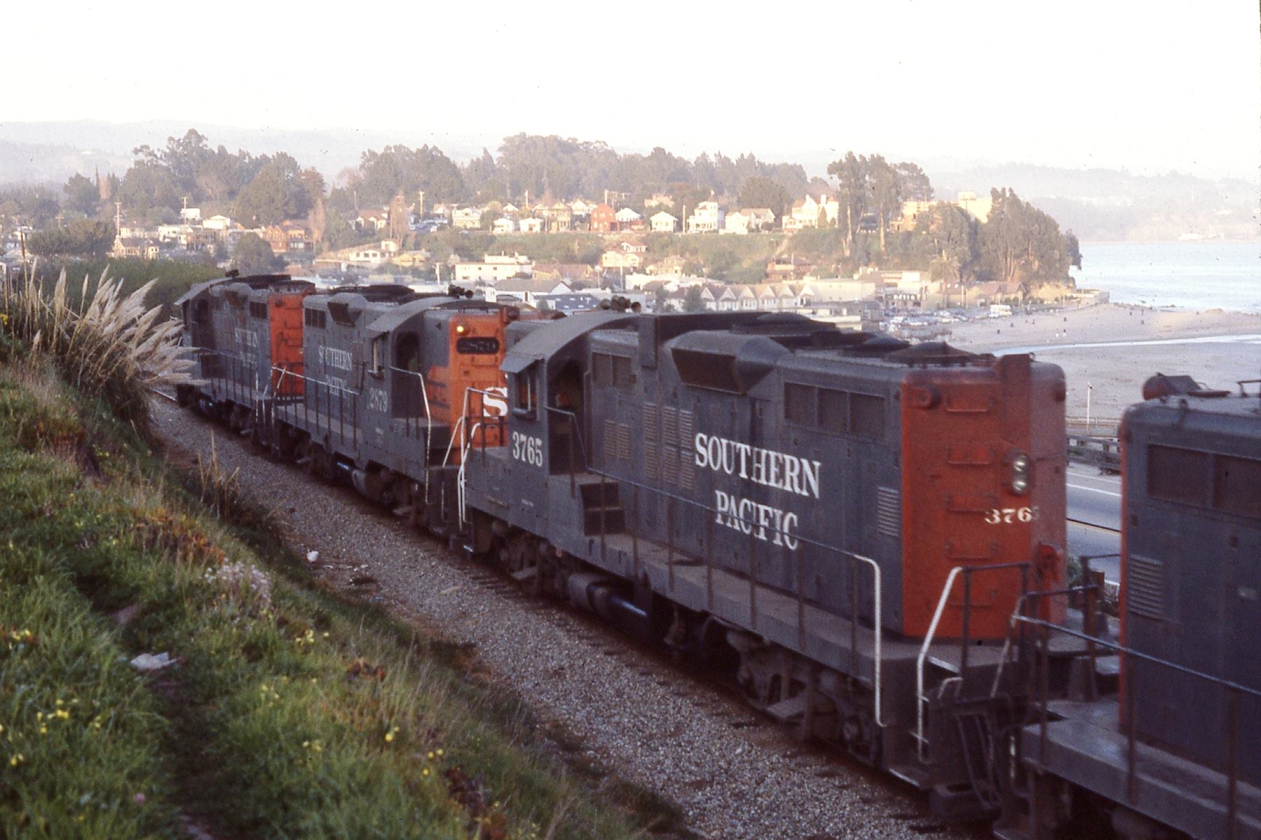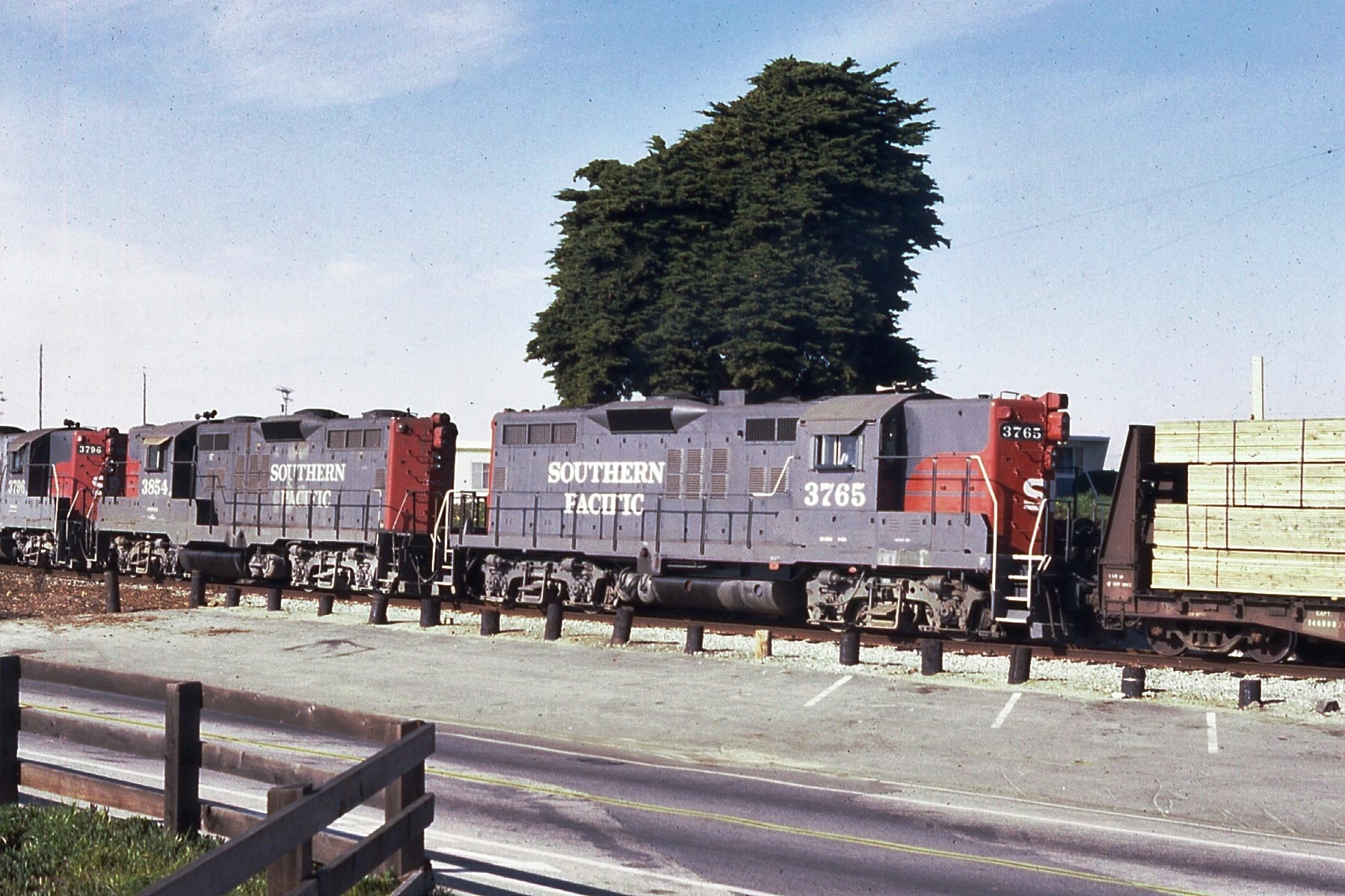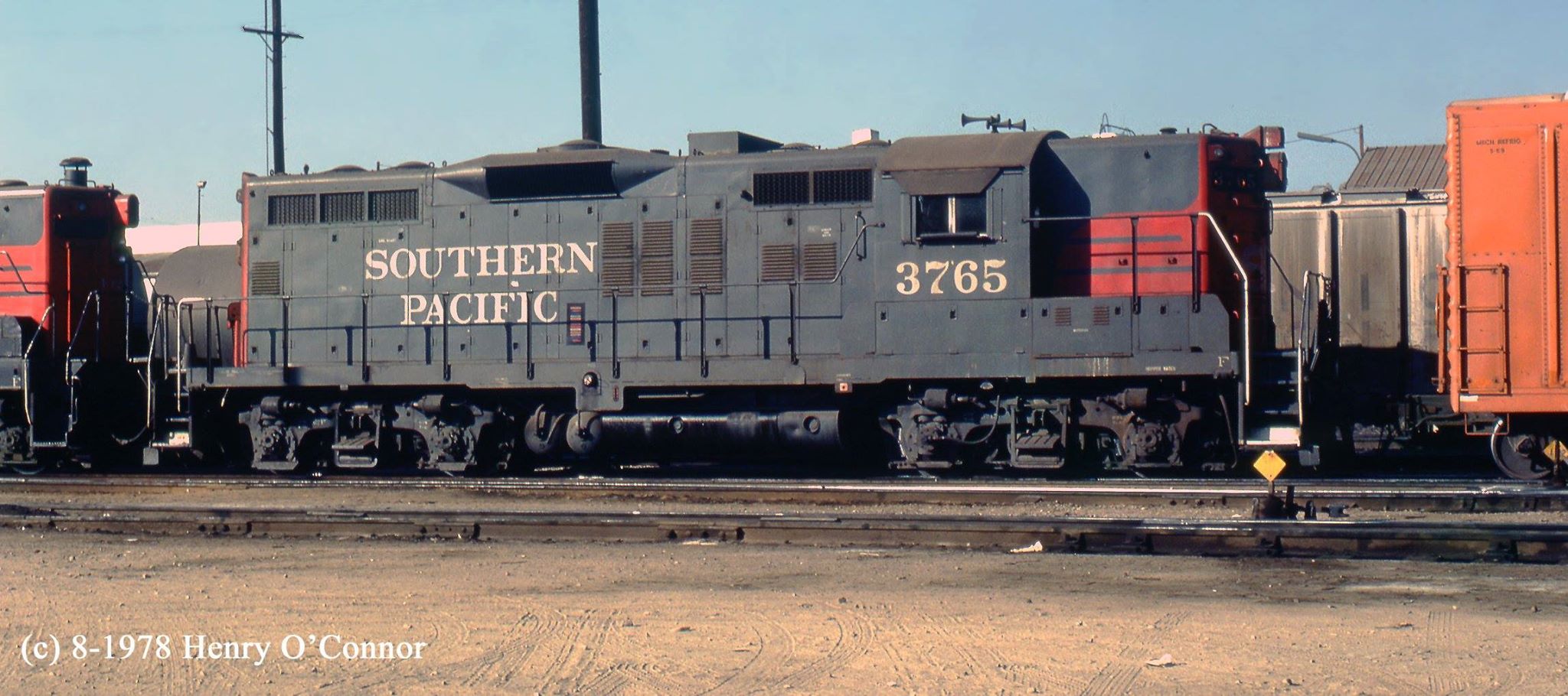 This loco was built in 3/1957 with EMD serial number 22954. She was built as a freight engine. She was painted in standard for the time black widow colors and featured a full 5 light headlight arrangement on each end.