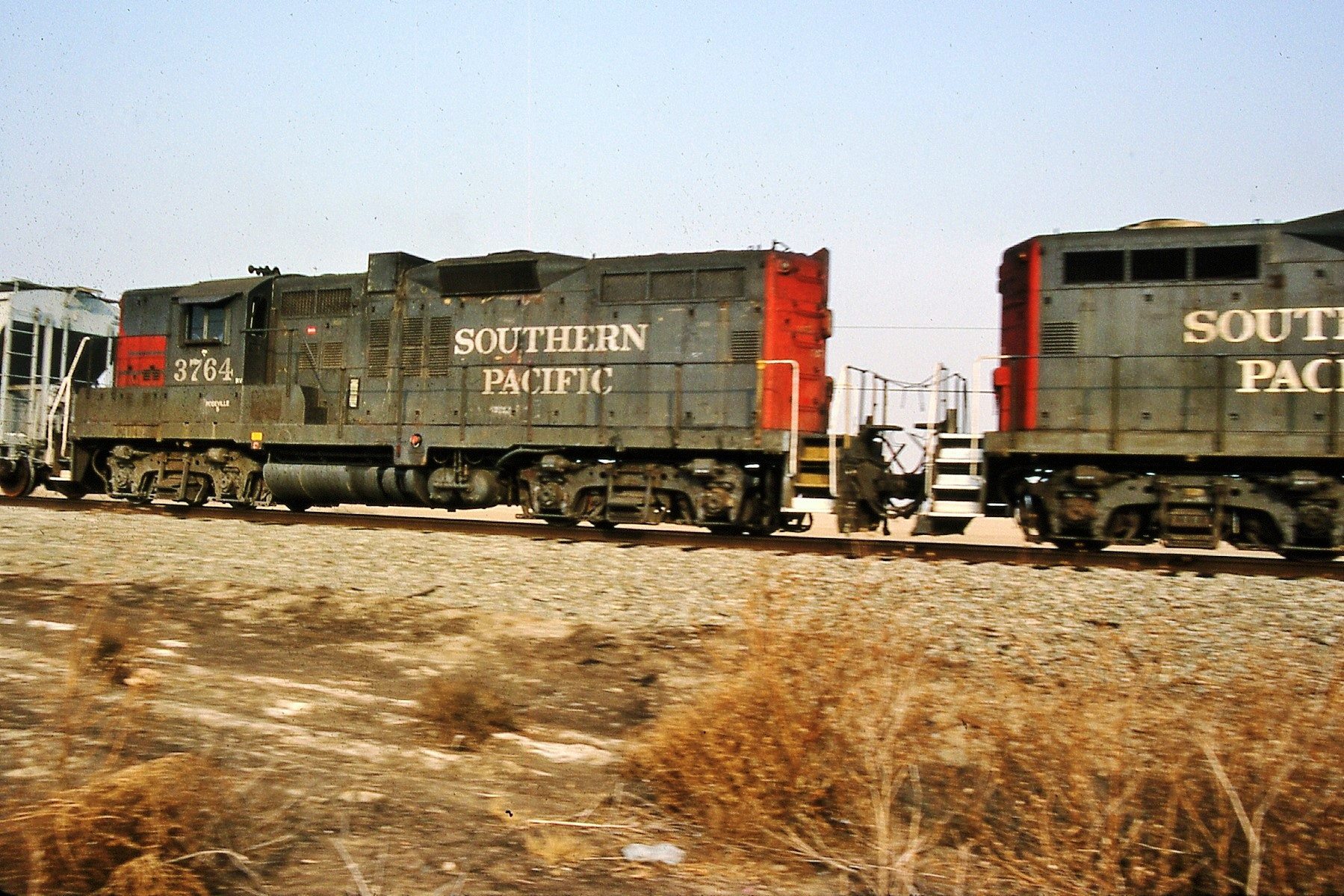 This loco was built in 4/1957 with EMD construction number 22977. She was built as a freight engine. She was painted in standard for the time black widow colors and featured a full 5 light headlight arrangement on each end.