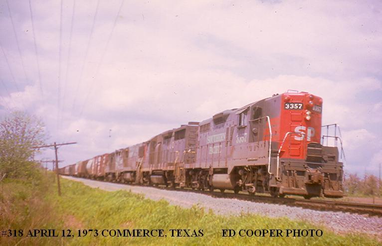 She entered the GRIP program and emerged as SP 3357 in bloody nose paint in 6/1972. She was one of the few ex T&NO GP9's to be outfitted with SP Pacific Lines type gyralights at GRIP. She sported the somewhat unusual dual casting with the upper light set as a gyralight and the lower as a red UDE light.