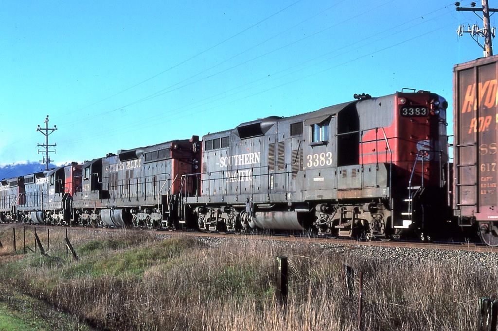 This loco was built in 5/1954 with EMD serial number 19465. She was built as a freight engine. She was painted in standard for the time black widow colors and featured a single dual sealed beam headlight on each end.