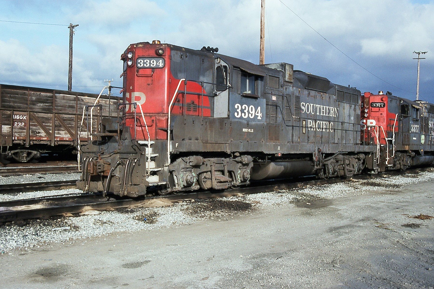 This loco was built in 5/1954 with EMD builder's number 19468. She was built as a freight engine. She was painted in standard for the time black widow colors and featured a single dual sealed beam headlight on each end.