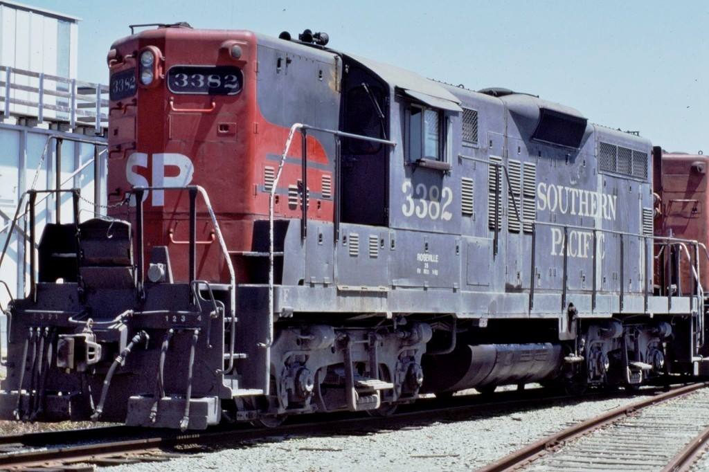This loco was built in 5/1956 with EMD serial number 21419. She was built as a freight engine. She was painted in standard for the time black widow colors and featured a single dual sealed beam headlight on each end.