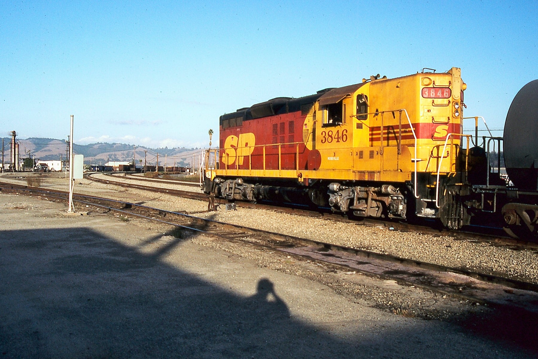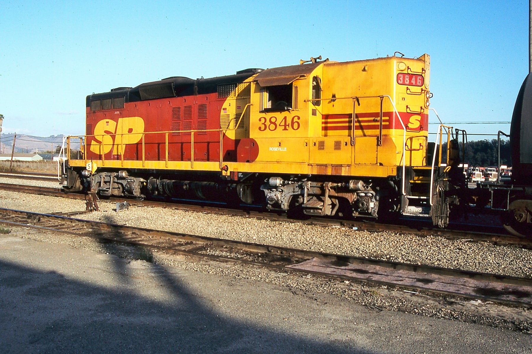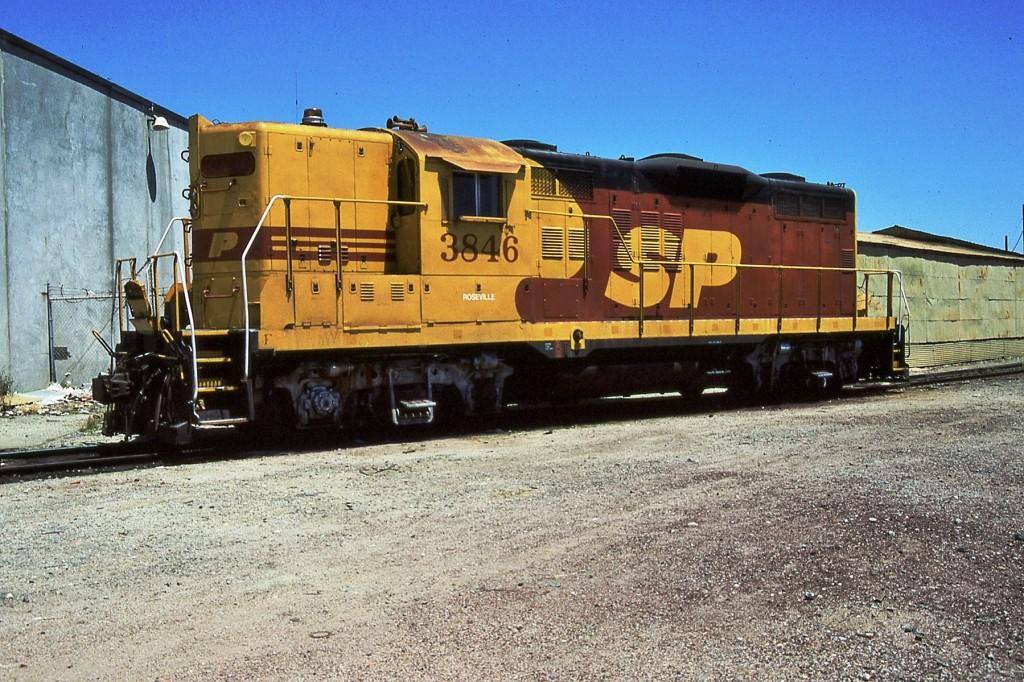 This loco was built in 2/1959 with EMD builder's number 25147. She was built as a freight engine. She was painted in the newly standard grey and red or "bloody nose" colors and featured a single dual sealed beam headlight on each end.