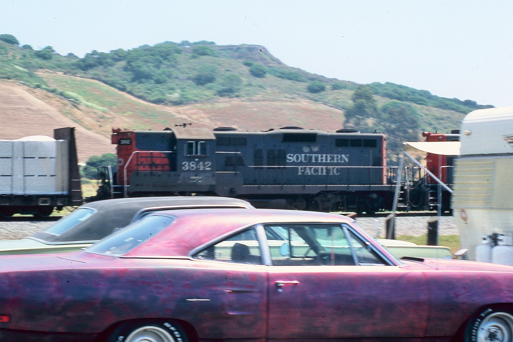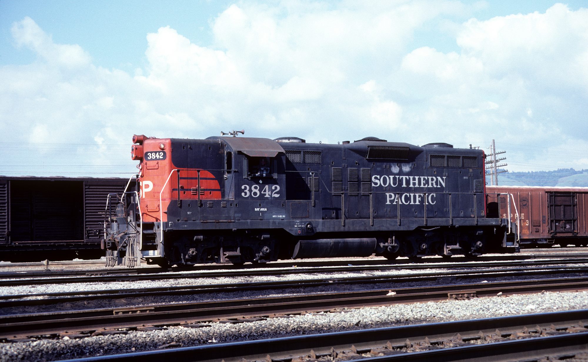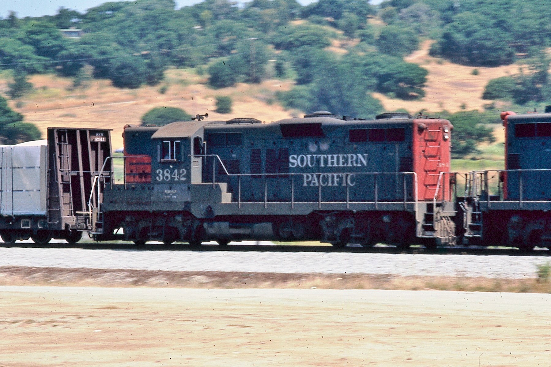 She entered the GRIP program and emerged as SP 3842 in 12/1976. She appears to have been one of the few former T&NO GP9's to receive a full SP style headlight package upon rebuild.