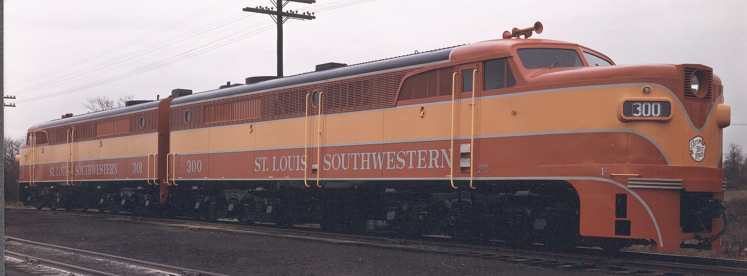 This loco was built in 11/1949 with ALCO-GE construction number 77511. She was painted in the SP's Daylight orange and red with "St. Louis Southwestern" spelled out on her side as a passenger engine.