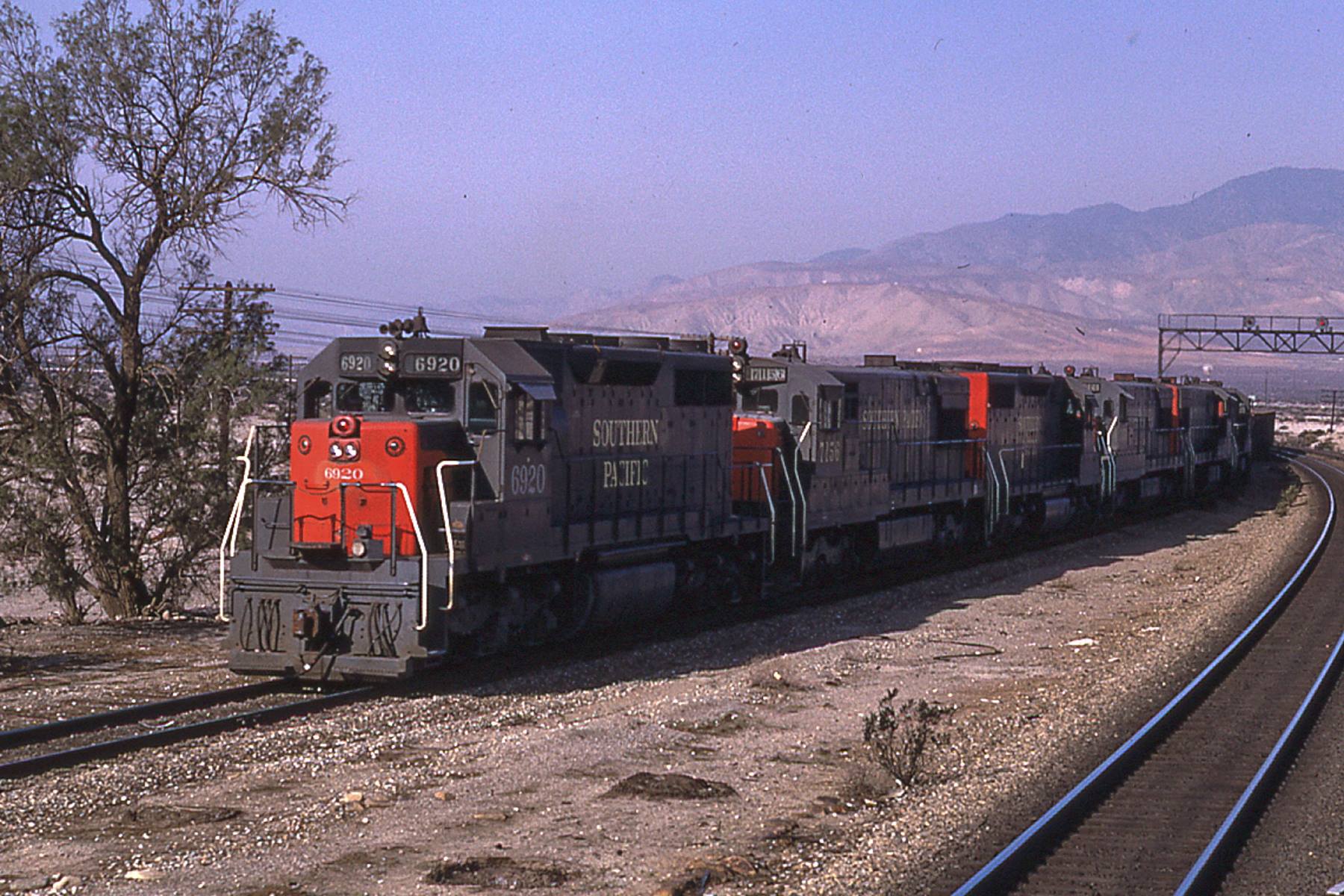 This loco was built in 2/1965 with EMD construction number 29850. She was built as a freight engine. She was painted in standard for the time bloody nose colors and featured a full 5 light headlight arrangement on the front end. The rear featured a dual sealed beam light only.