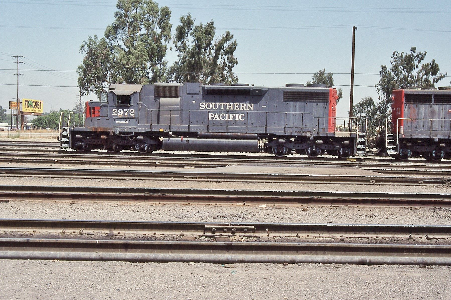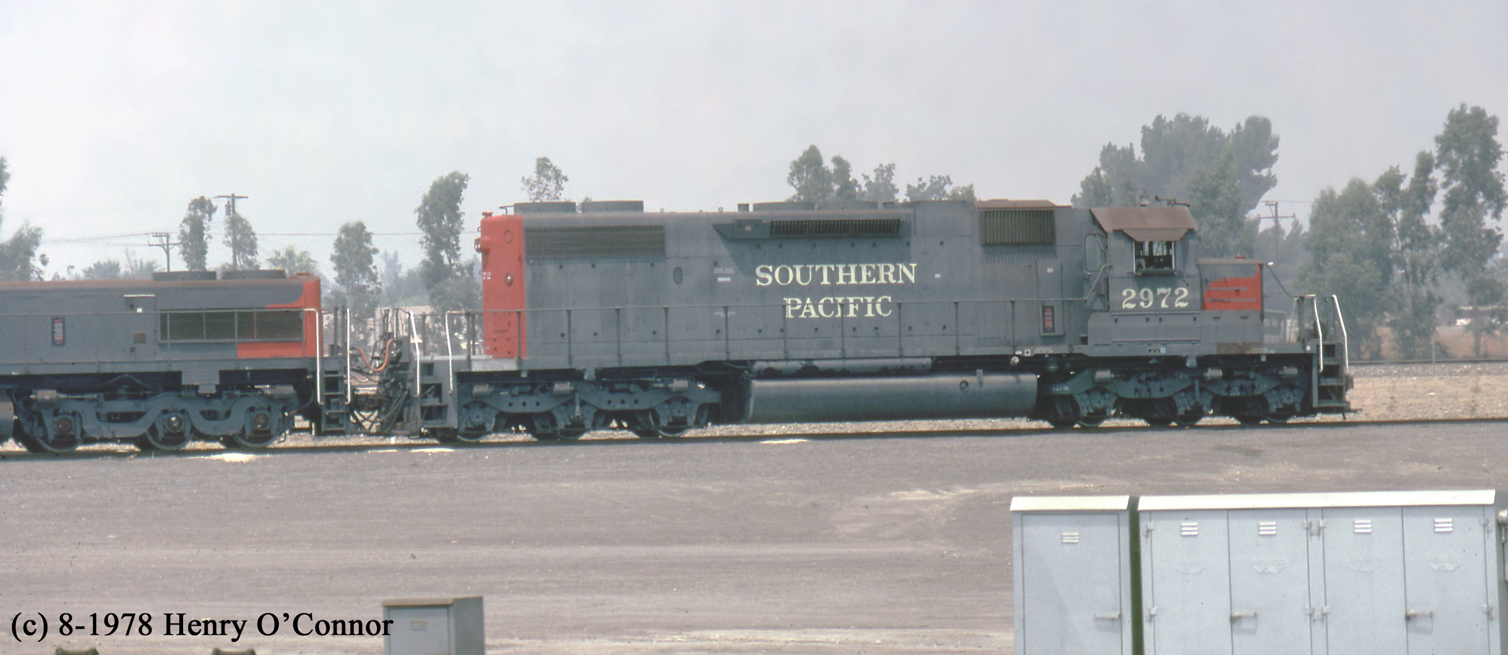 This loco was built in 4/1973 with EMD construction number 72681-2. She was built as a heavy switch engine for use at the newly built West Colton, CA hump yard. She was painted in standard for the time bloody nose colors and featured few of the extras SP specified for road units, most noticably, SP style light packages.