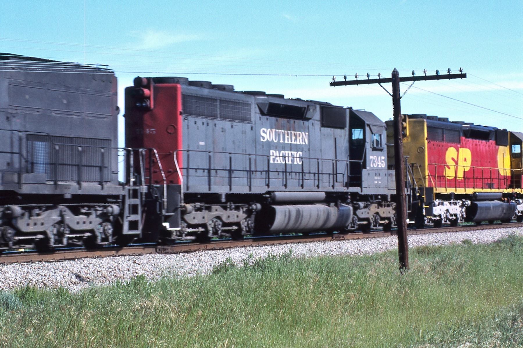 She was rebuilt and renumbered to SP 7345 as part of the SP's GRIP program on 01/16/1981. The most visible external change was the addition of a full set of Gyralight to the rear of the unit.