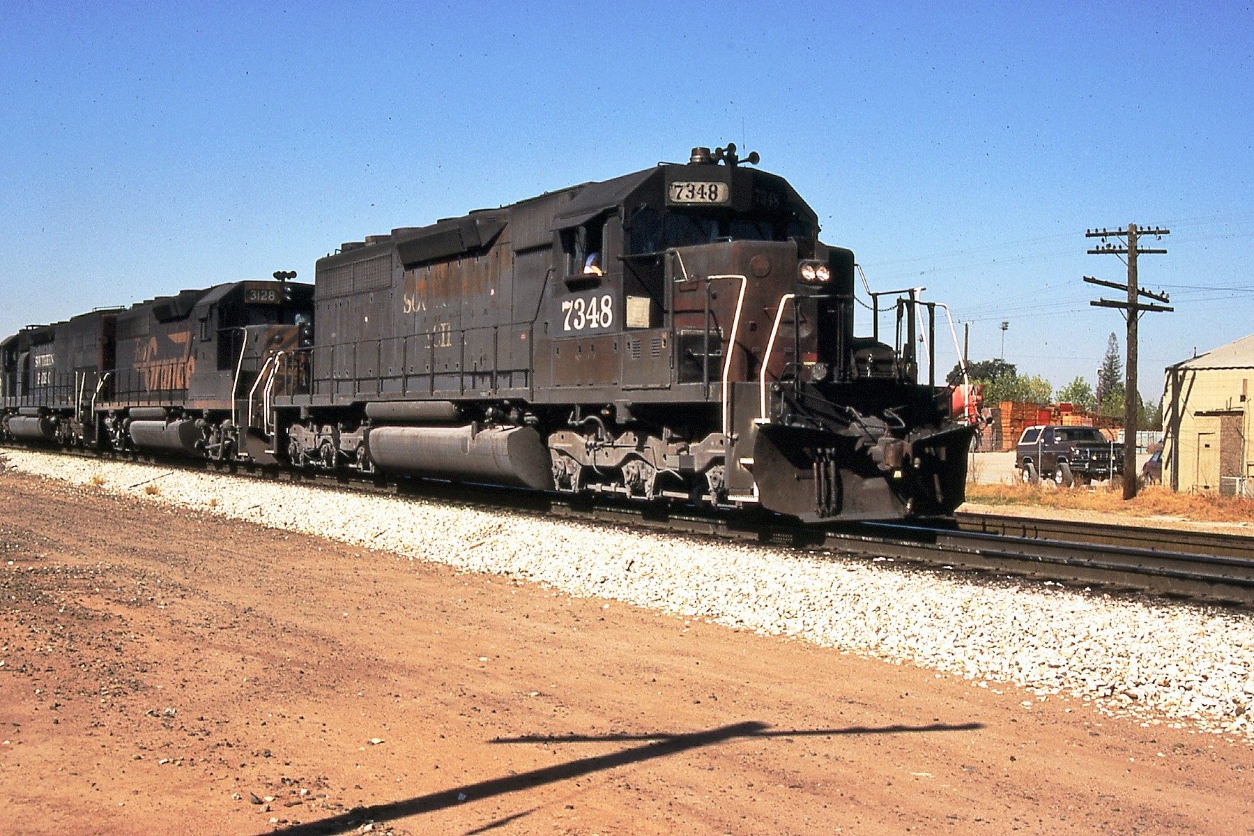She was rebuilt and renumbered to SP 7348 as part of the SP's GRIP program on 01/29/1981. The most visible external change was the addition of a full set of Gyralight to the rear of the unit.