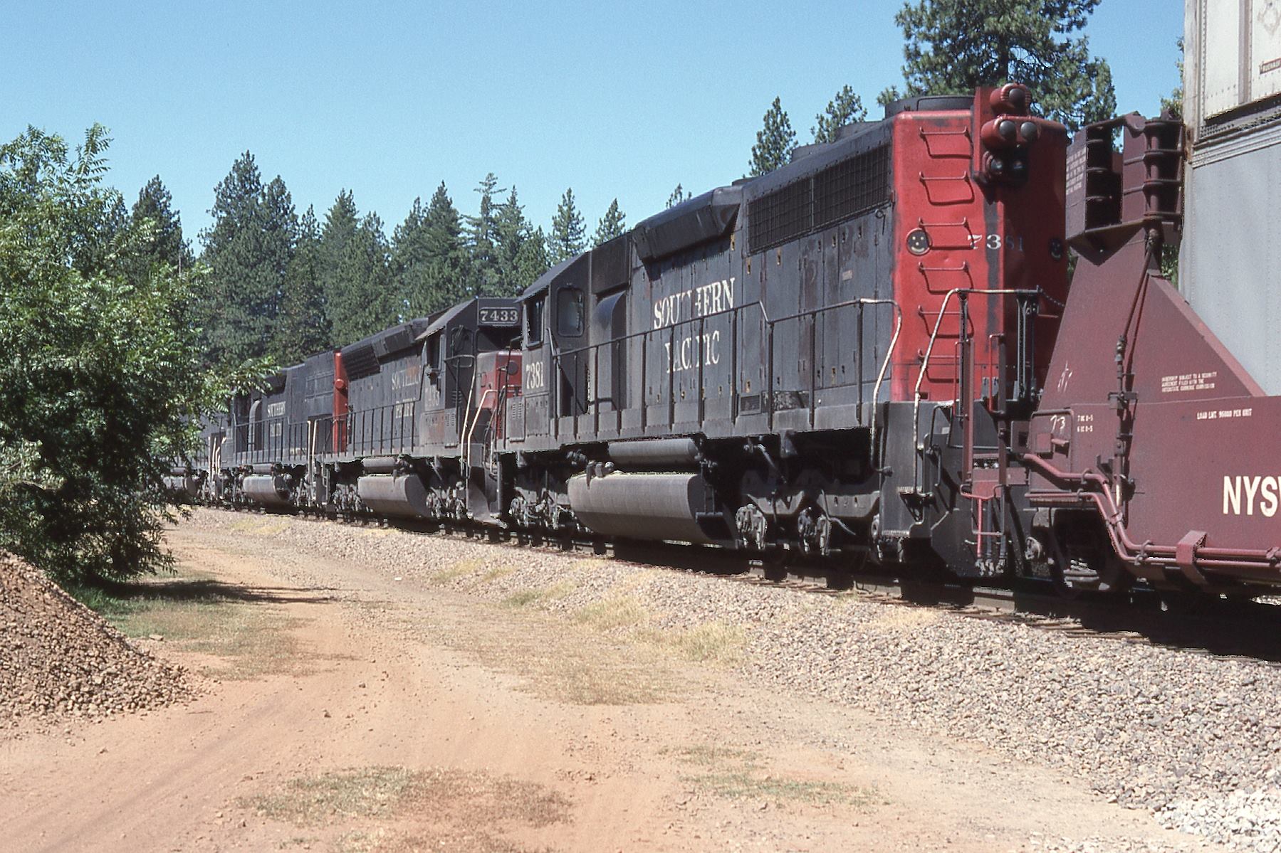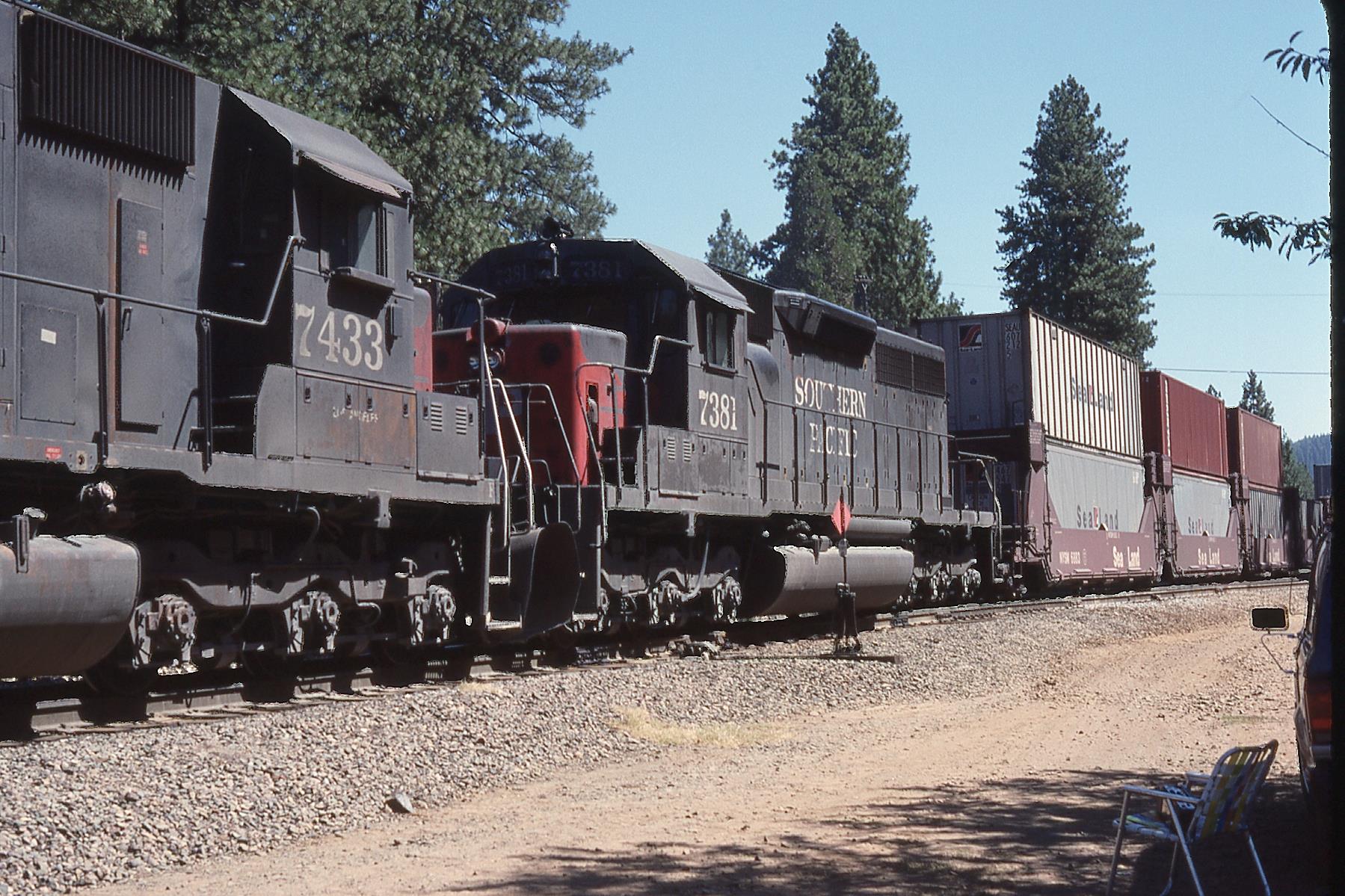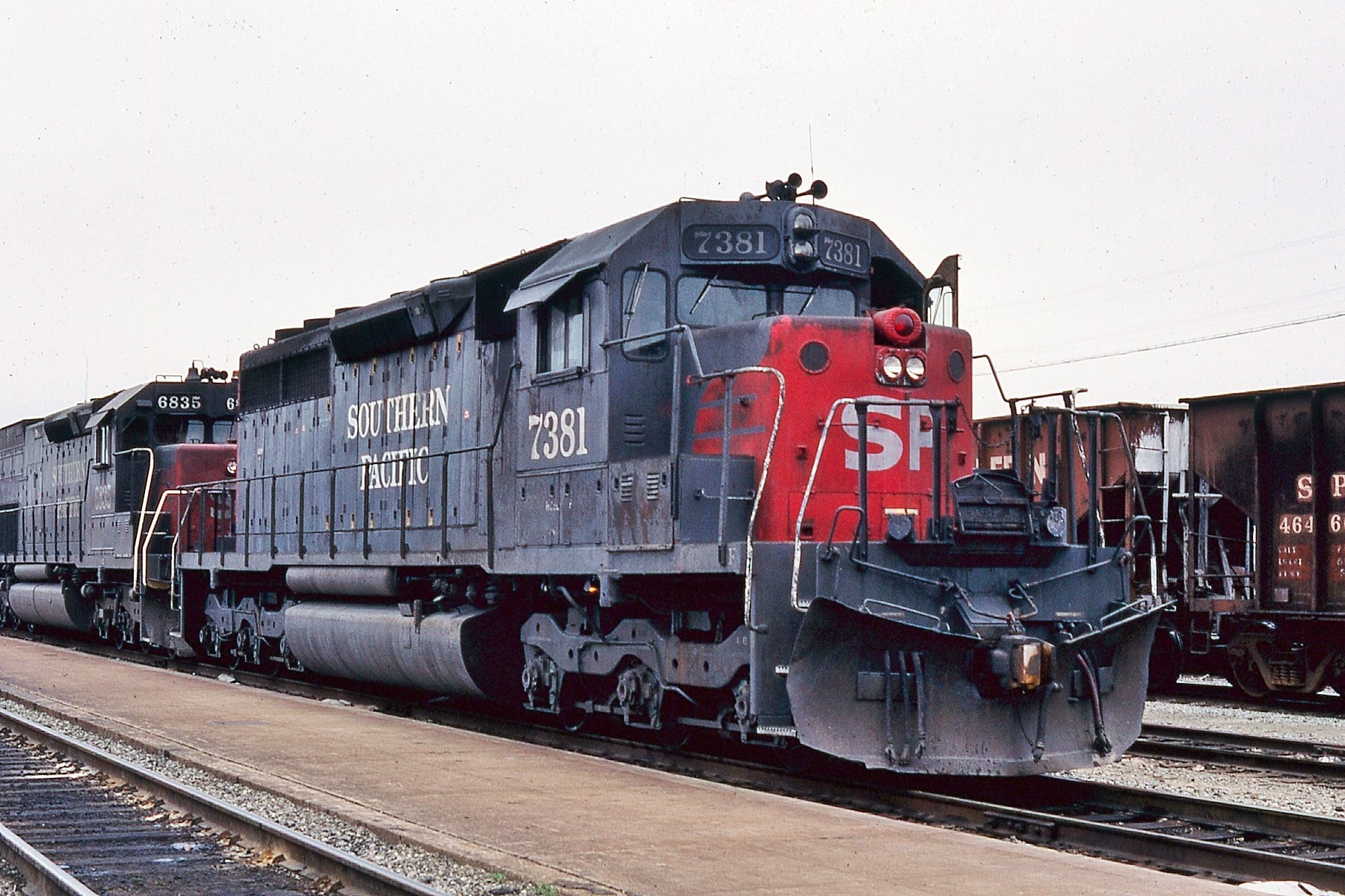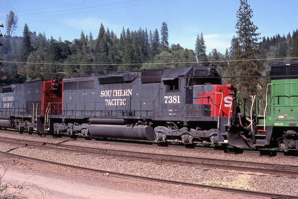 She was rebuilt and renumbered to SP 7381 as part of the SP's GRIP program on 07/30/1981. The most visible external change was the addition of a full set of Gyralight to the rear of the unit.