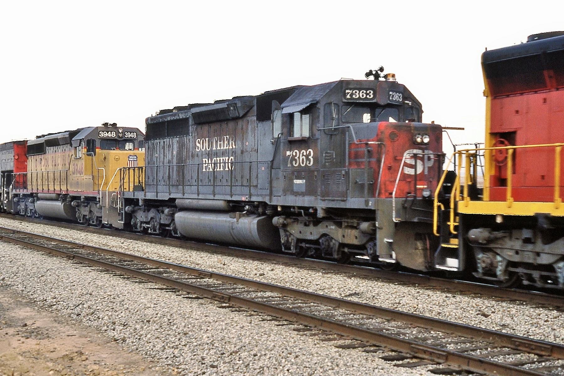 She was rebuilt and renumbered to SP 7363 as part of the SP's GRIP program on 04/09/1981. The most visible external change was the addition of a full set of Gyralight to the rear of the unit.