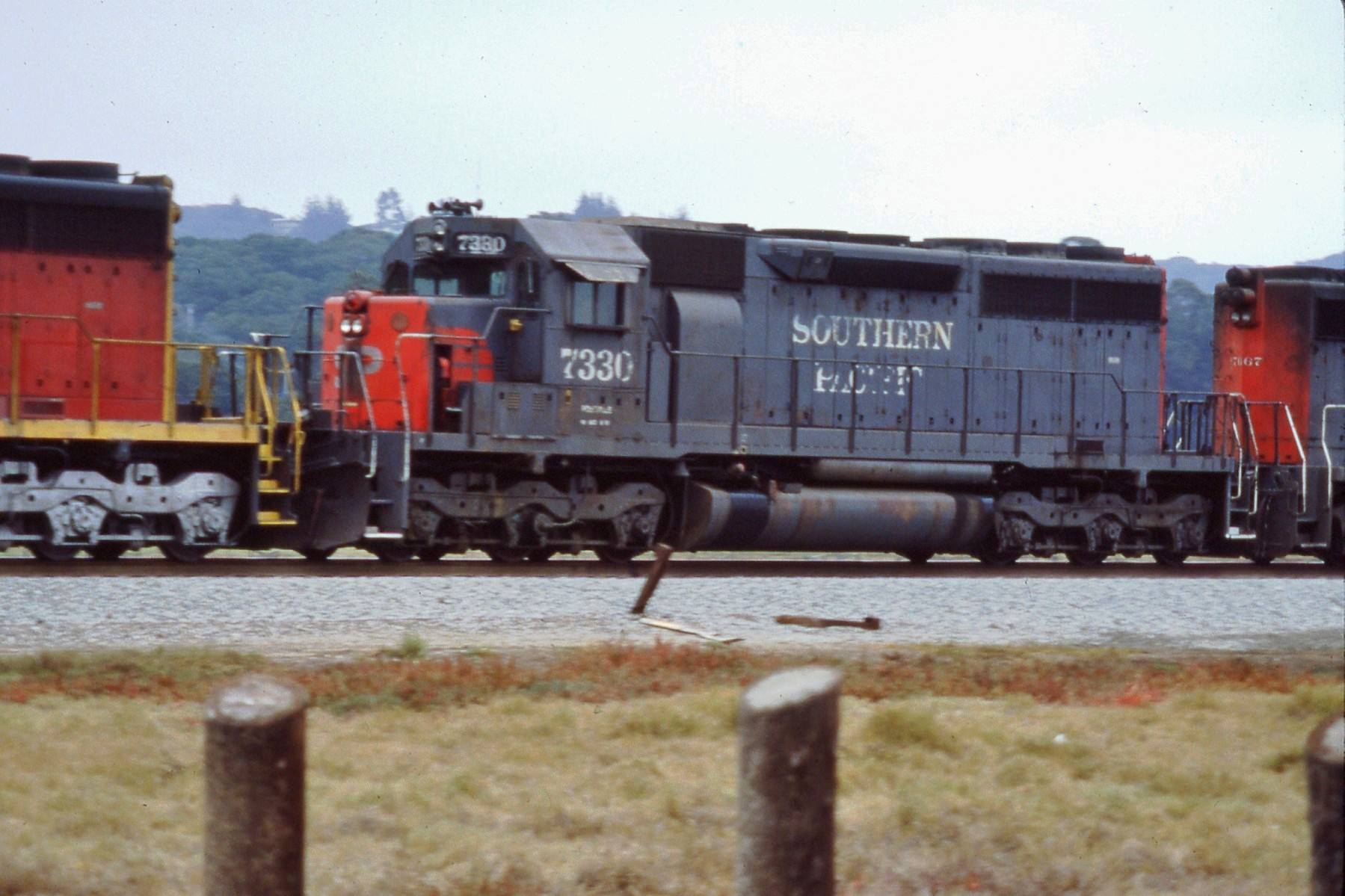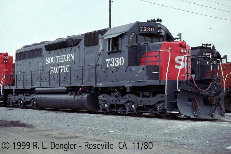 She was rebuilt and renumbered to SP 7330 as part of the SP's GRIP program on 10/21/1980. The most visible external change was the addition of a full set of Gyralight to the rear of the unit.