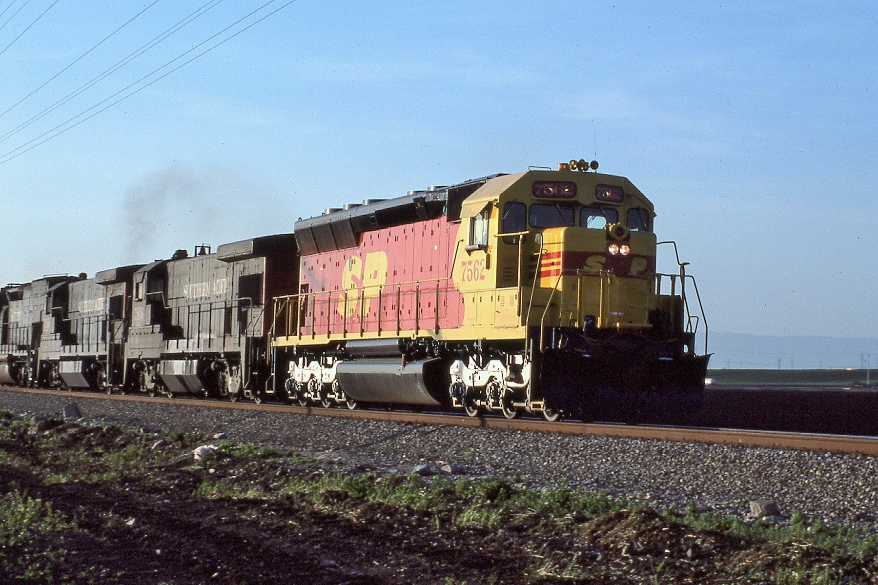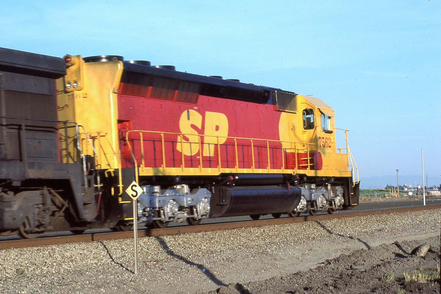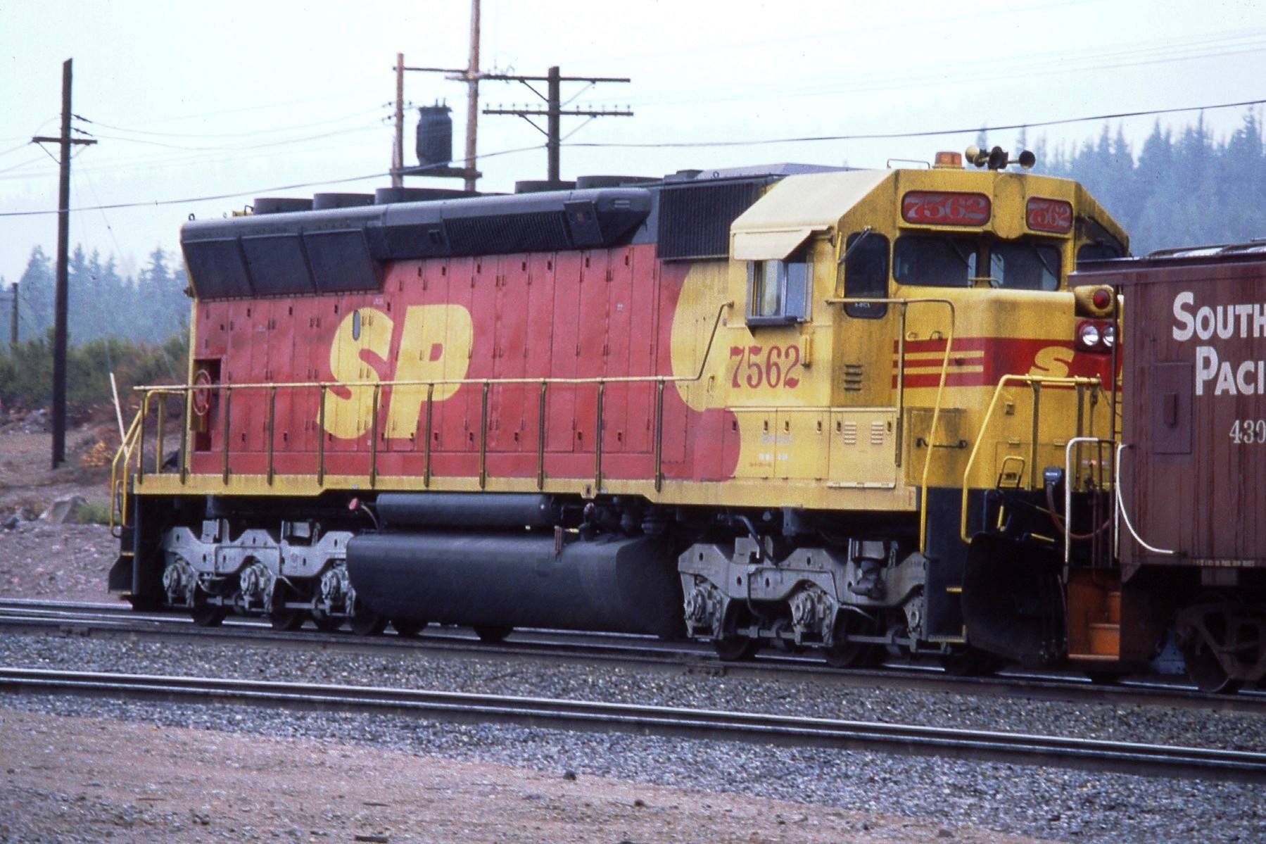 She was rebuilt and renumbered to SP 7562 as part of the SP's GRIP program on xx/xx/198x. The most visible external changes at rebuild were the addition of a full set of Gyralights (Oscitrol type) to the rear of the unit and her new "kodachrome" colors as part of the attempted SPSF merger.