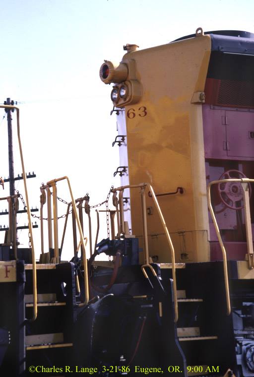 She was rebuilt and renumbered to SP 7563 as part of the SP's GRIP program on xx/xx/198x. The most visible external changes at rebuild were the addition of a full set of Gyralights (Oscitrol type) to the rear of the unit and her new "kodachrome" colors as part of the attempted SPSF merger.